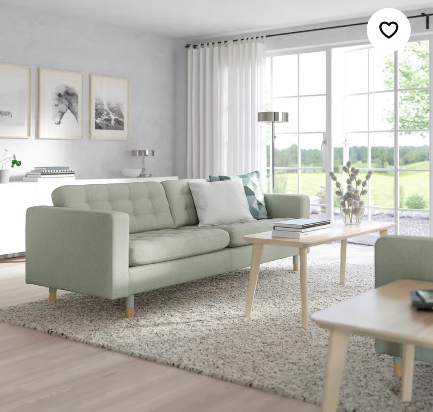 IKEA MORABO sofa in Gunnared light green. Tufted seat and back cushions. It's a two-seater. Perfect for a living room or den!