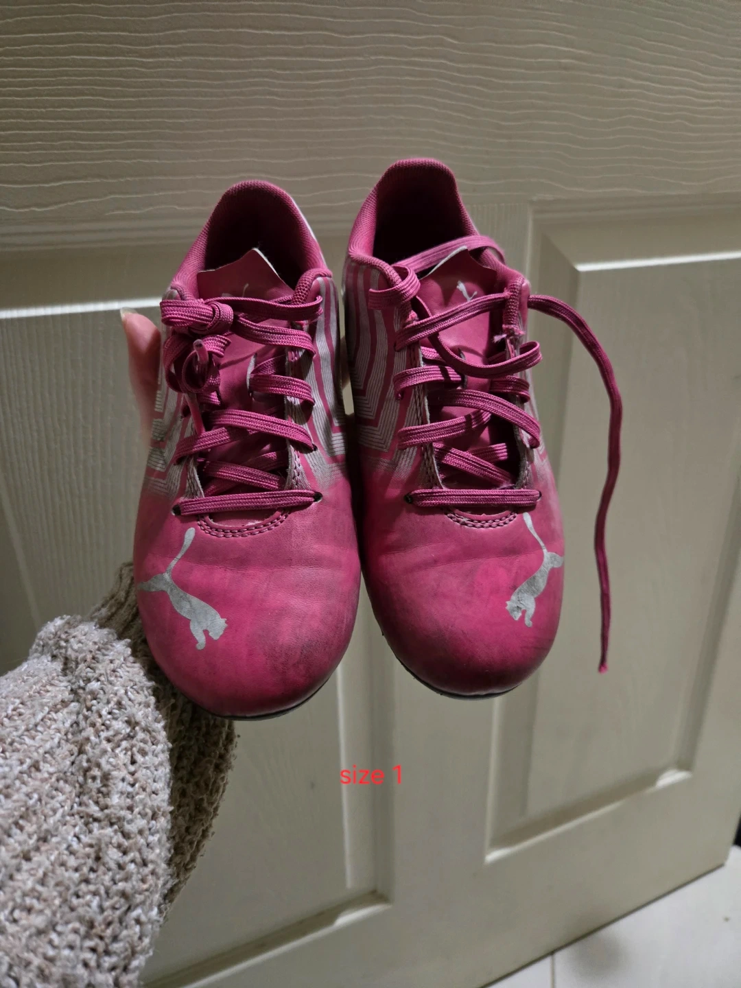 Buy & SellPuma Pink Soccer Cleats - Size 1Puma Pink Soccer Cleats - Size 1$10Pink Puma soccer cleats for kids. These cleats are a size 1. They're ready for the field!ConditionGoodWHERE TO MEETCheck LocationView MapSELLERRachelSardis200 reviews0 chats·0 favorites·2 viewsSEND CHAT TO SELLERHi Rachel! I’m interested in your listing.Hi Rachel! I’m interested in your listing.Get the Karrot app to chatSign In to chat