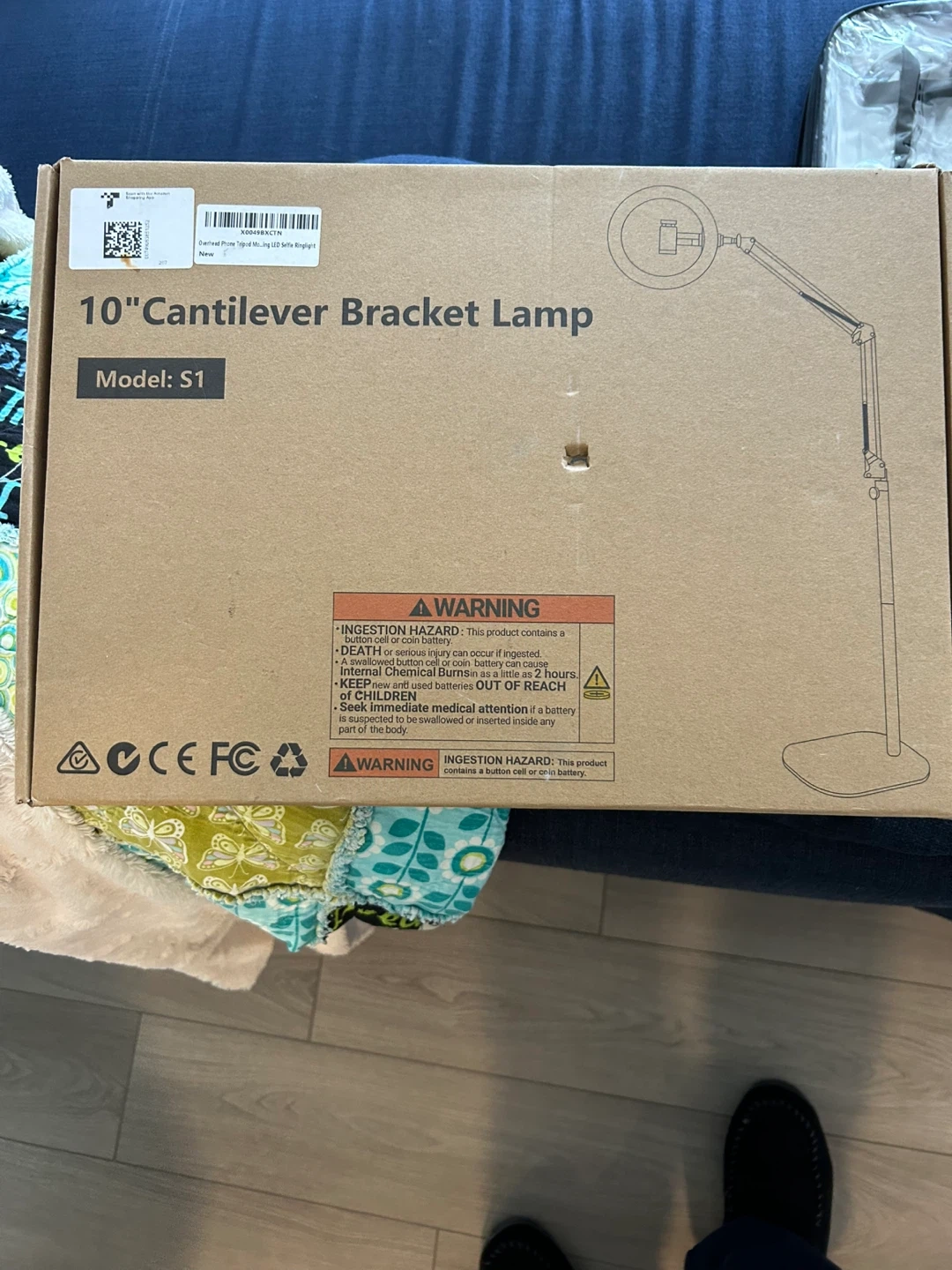 This 10" cantilever bracket lamp is a ring light with adjustable brightness. It comes with a phone holder and a cable with inline controls. Great for content creators or anyone needing better lighting!