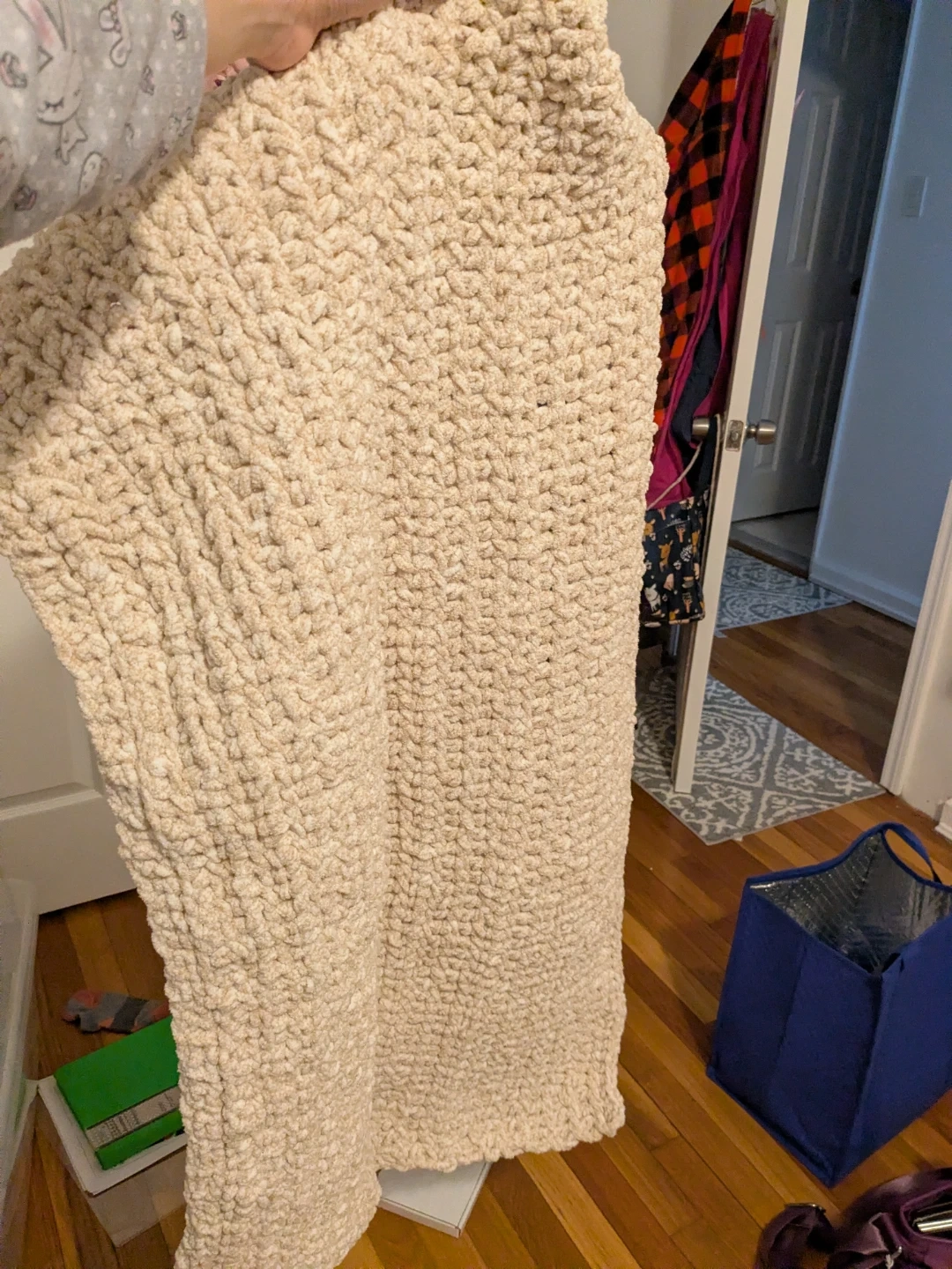Selling a super soft and cozy Crocheted blanket. Made with baby soft yarn and pre washed with a scalloped edge. It can fit over a stroller, or used as a crib blanket. It can even be wrapped around the baby. It's very large, I kinda got carried away. It's crocheted design prevents suffocation during sleeping. I made it for a friend's baby, but I lost contact with them. Made in a smoke free home. Please contact me if you're in need of a baby blanket and have trouble affording one. I really want to give it to someone who needs it.