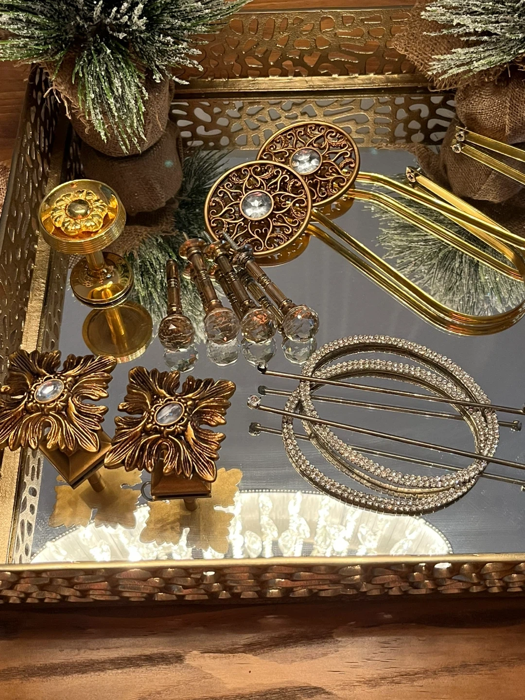 Selling a collection of gold-toned , jeweled decorative curtains accessories!