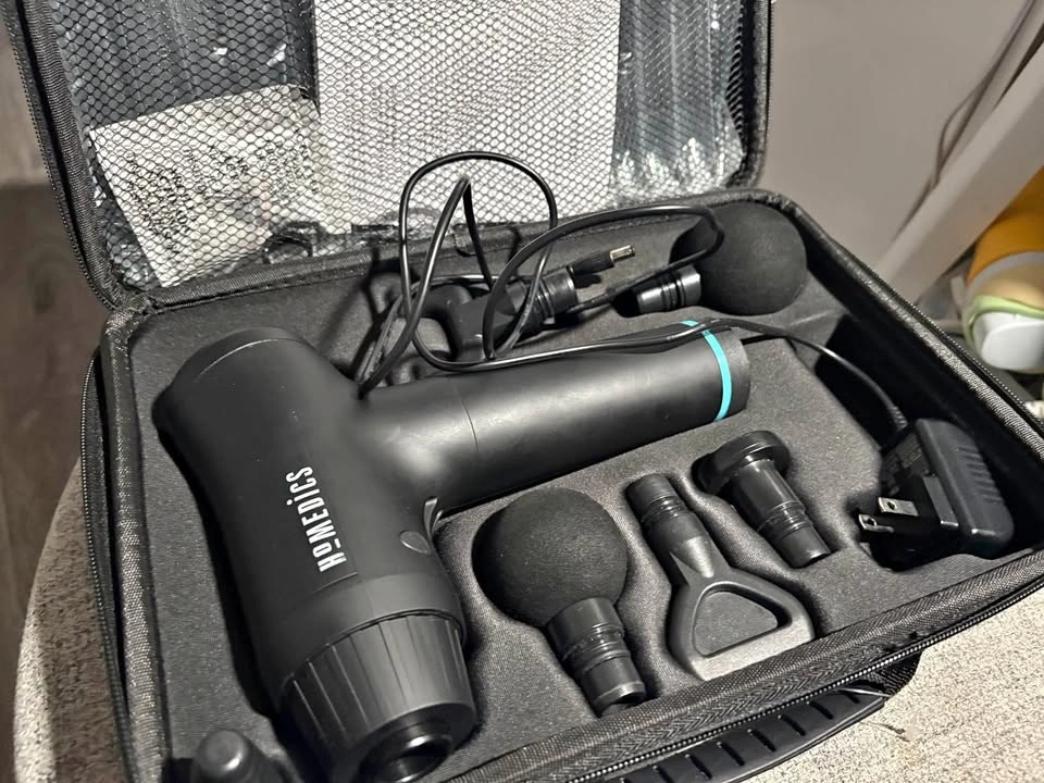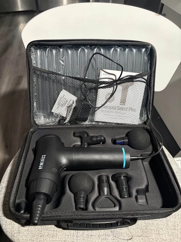 Features rapid, repetitive strokes designed to minimize muscle fatigue and ease tension. Comes with interchangeable heads to target specific muscles and multiple intensity levels. The device is cordless and comes with a carrying case for portability. Ideal for self-myofascial release and relieving muscle stiffness in the back, neck, shoulders, and legs.