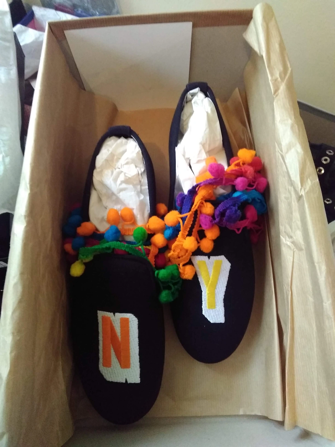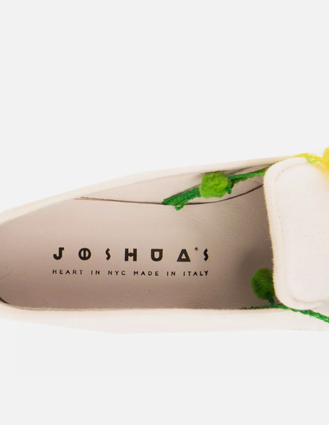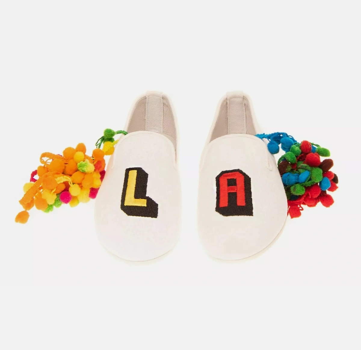Authentic Pair of Joshua Sanders loafers. Features colourful pom-poms and embroidered lettering. Made in Italy. New with box. LA or New York your choice. Brand new. Regular retail price $320