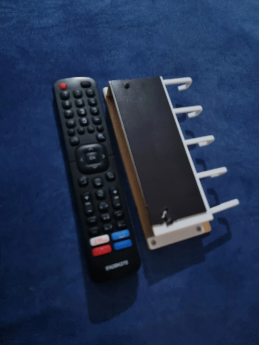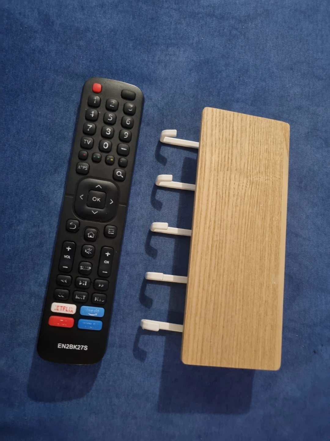 This wall-mounted organizer features a natural wood finish and five white hooks. It's perfect for hanging keys, leashes, or other small accessories by the door. The simple design complements any home decor.
