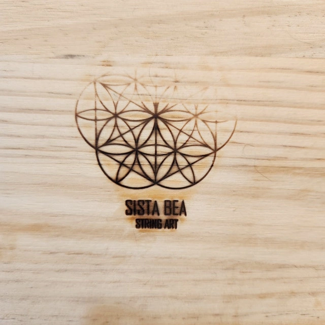 Original String Art on Wood by Sista Bea, artist from Granada, Spain. Features Sacred Geometry: Círculos Rosas. Dimensions: 19.25” L, 0.60” W, 19.50” H. Originally $300 + Shipping. Selling for $160. Price is firm and non-negotiable. Cash only. Pick up in Allard, SW Edmonton. Condition: Used - Good.