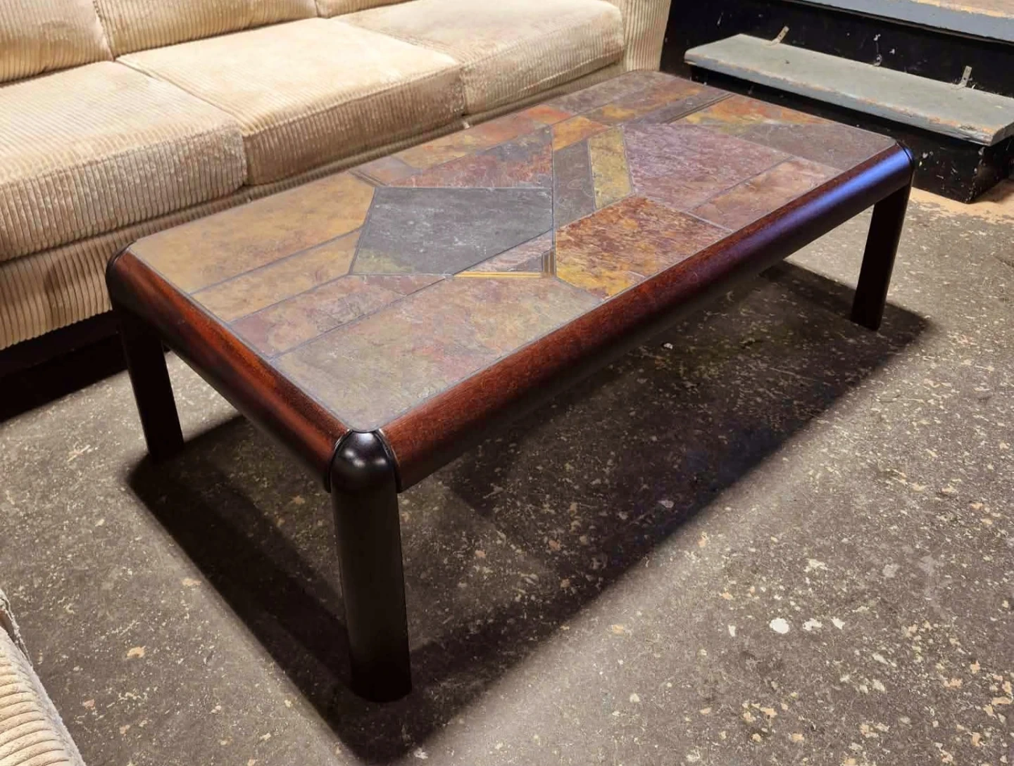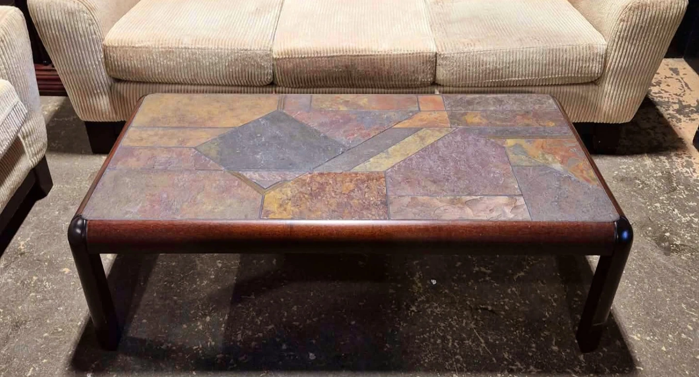 Danish Rosewood Console Table With Slate Tile Top (Delivery Available)