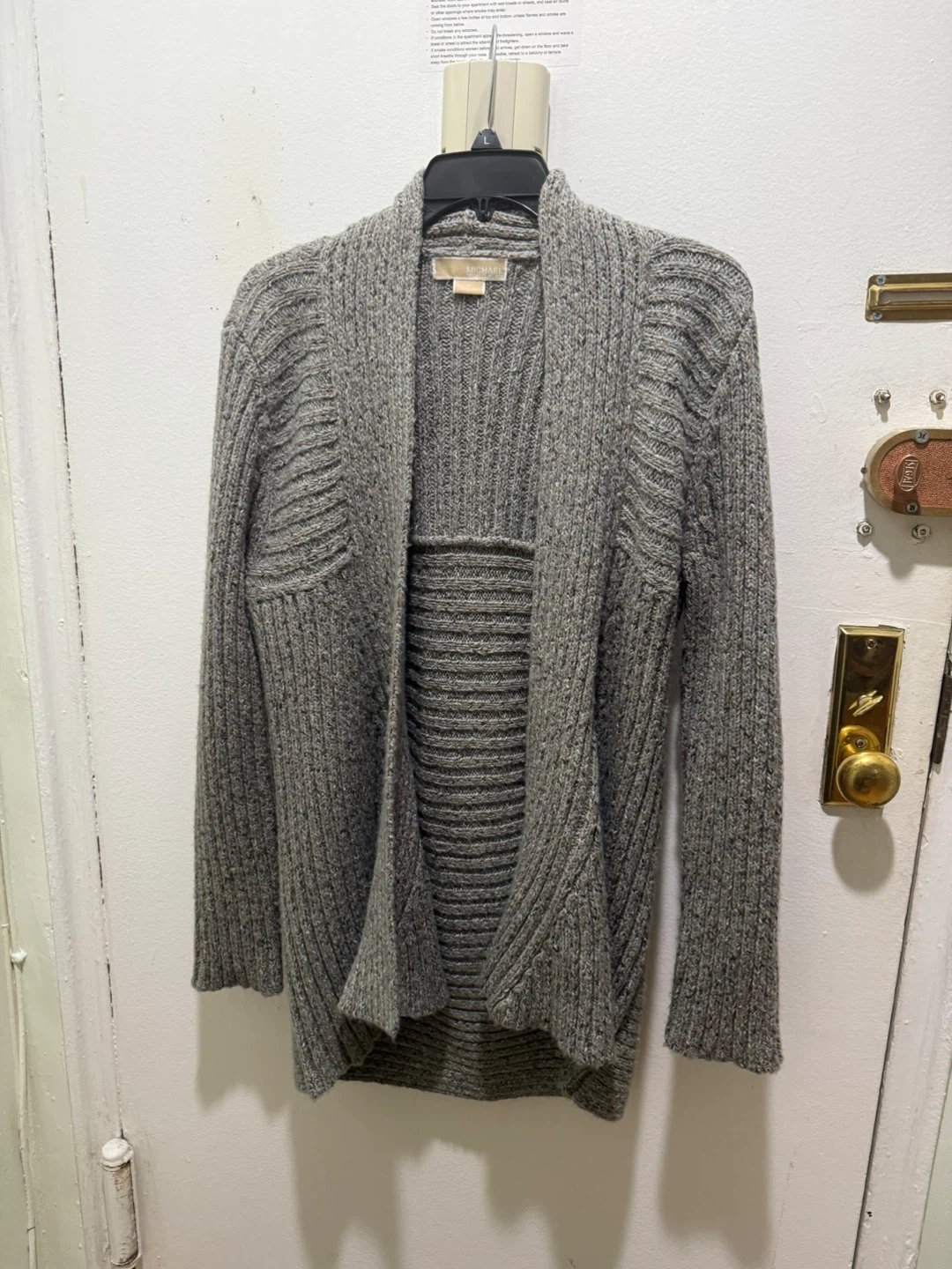 Selling a lovely gray cardigan from Michael Michael Kors in size L/G. It's in great condition and ready for a new home! The material feels soft and cozy, perfect for layering during cooler weather
