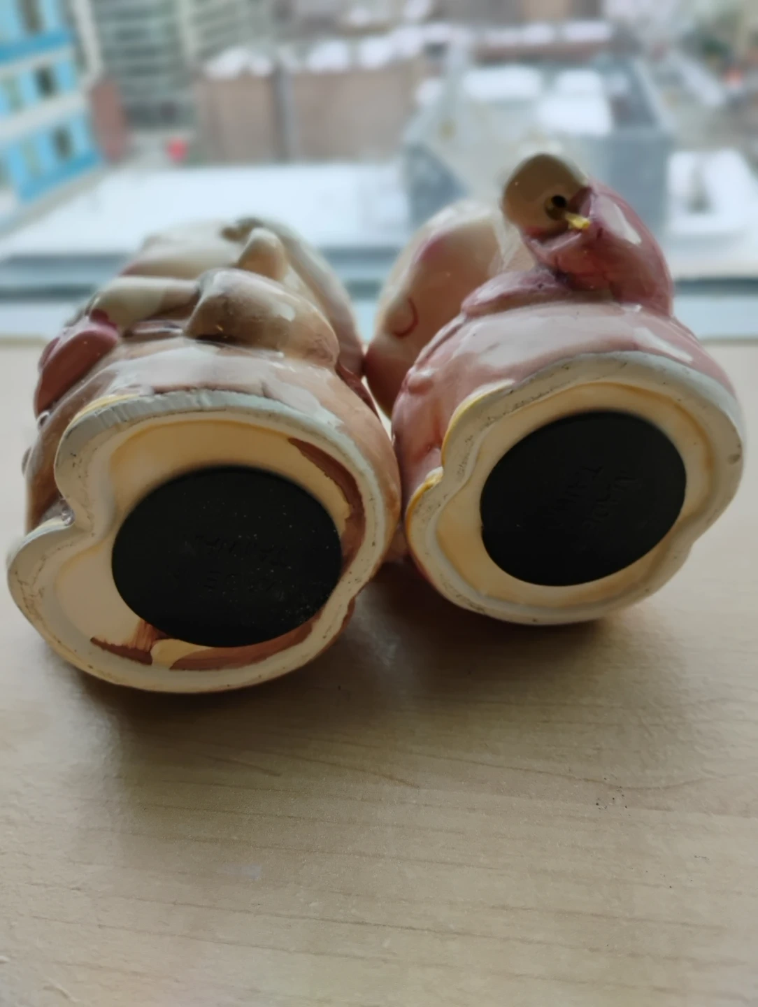 A cute pair of ceramic piggy banks shaped like a couple. They are about 5 in tall.