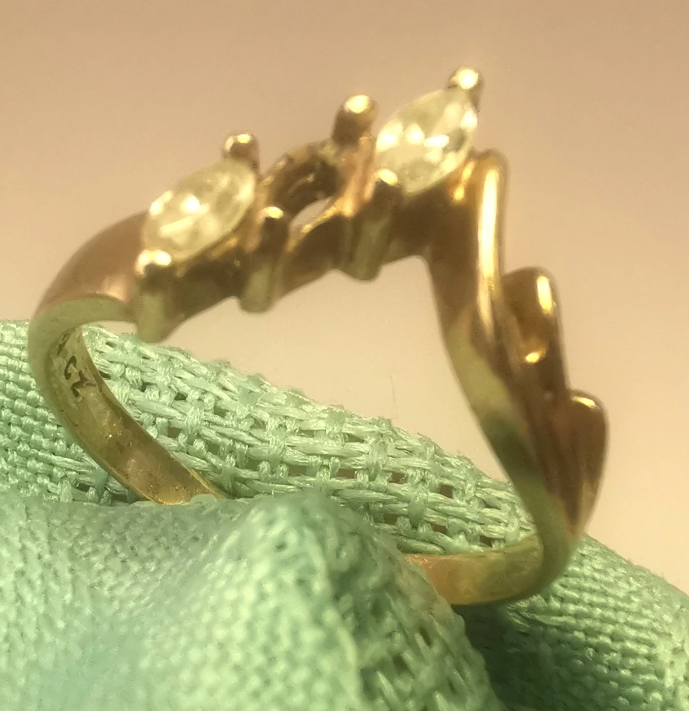 10K Gold Marquise cz Bypass Ring Size 6.5 (3g) 1 MISSING STONE