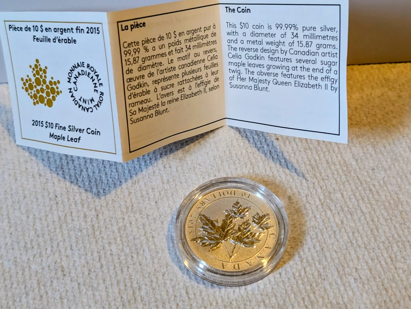 2015 $10 Fine Silver Coin - Maple Leaf Design
