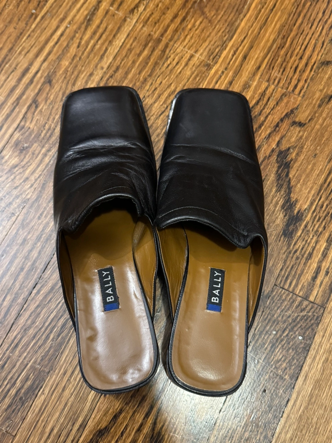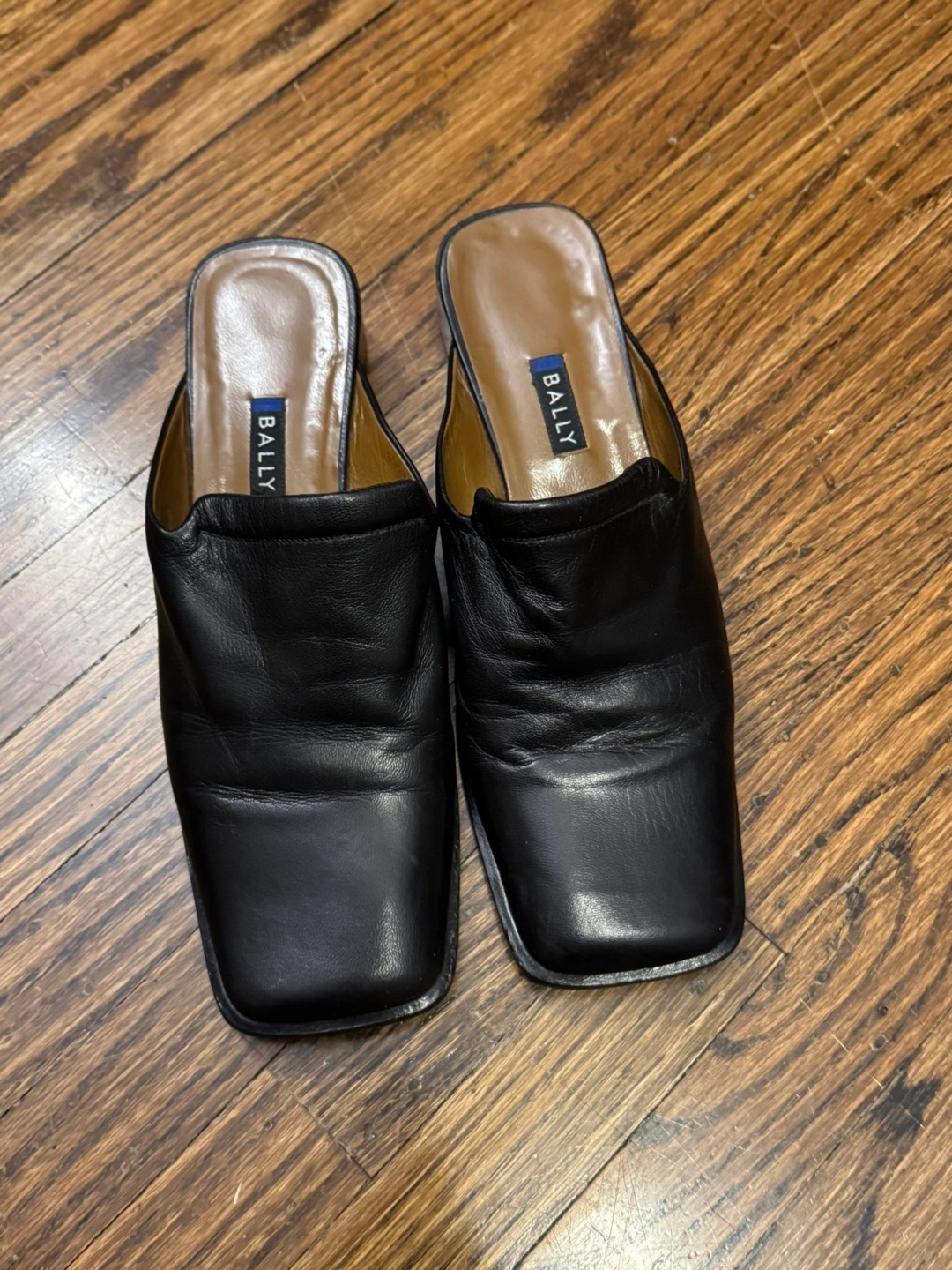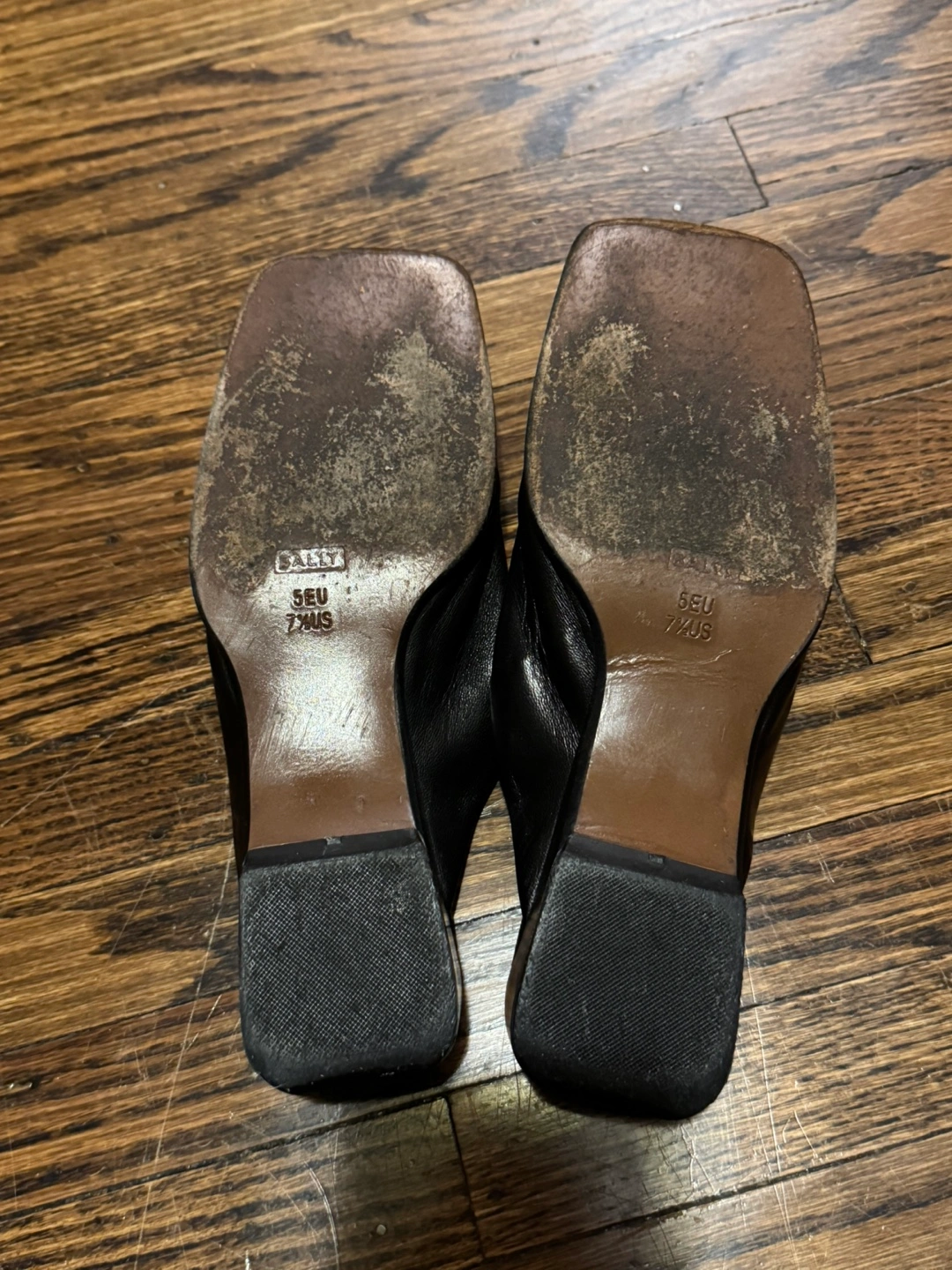 Selling a pair of gently used Bally black leather mules. These are a size 7.5 US. They have some signs of wear on the soles, but the leather is still in great condition!