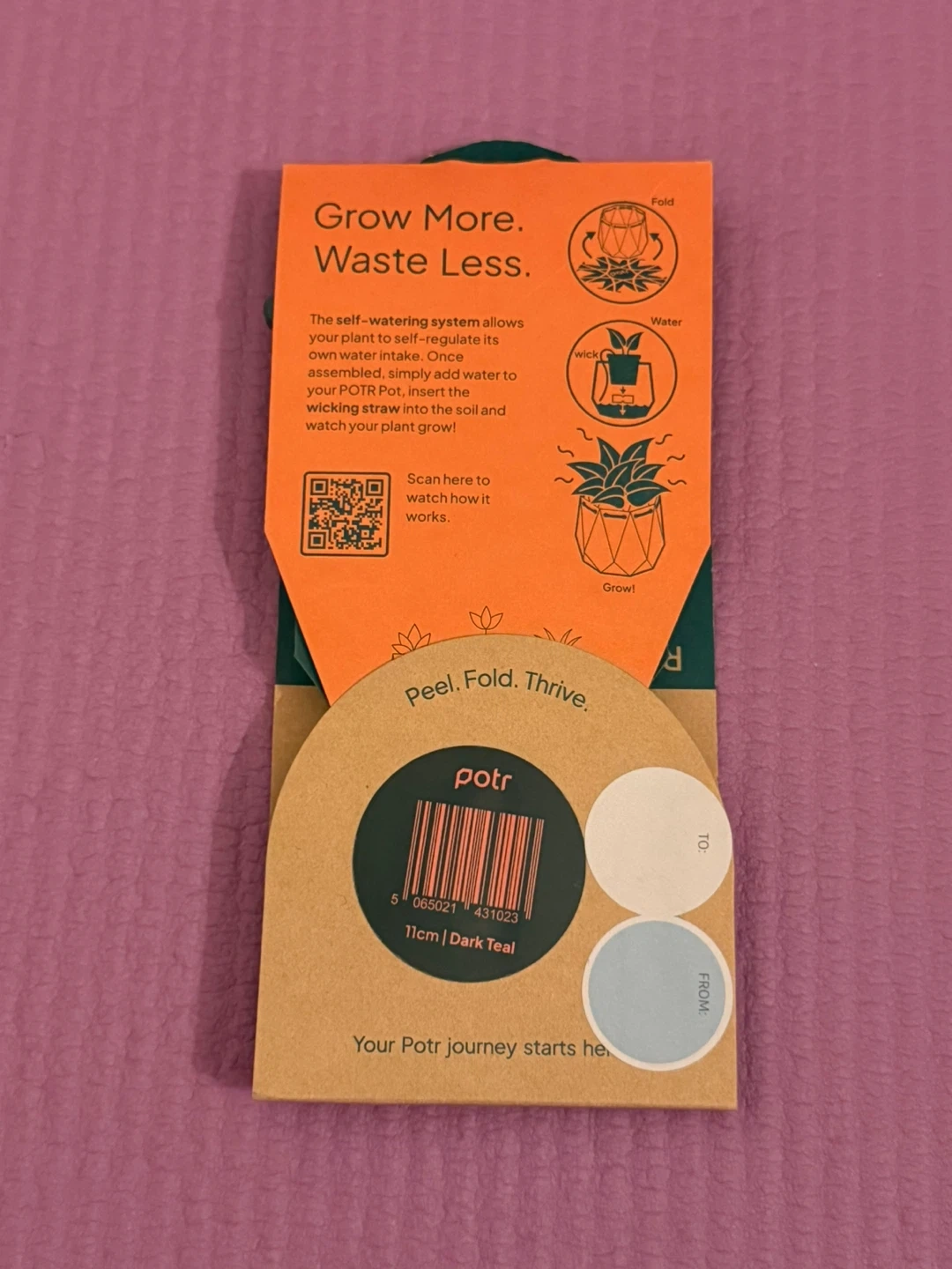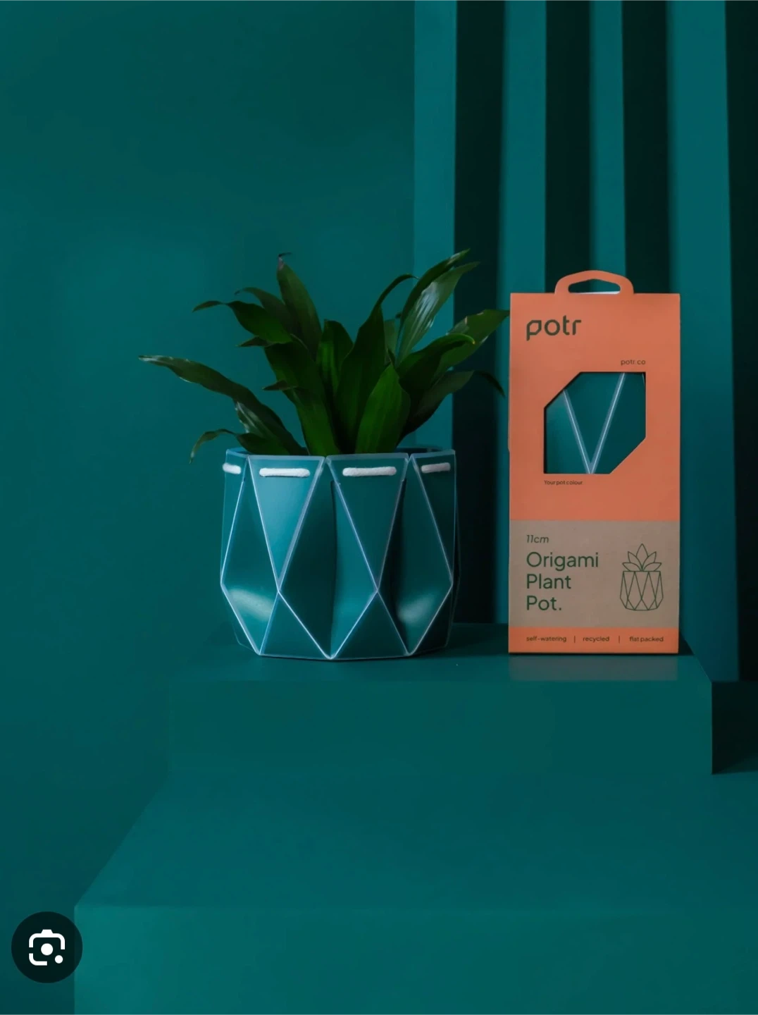 [✨Brand New✨]This is a POTR Self Watering Origami Plant Pot in Dark Teal, measuring 11cm. It's made from recycled materials and comes flat packed. The self-watering system allows your plant to regulate its own water intake.