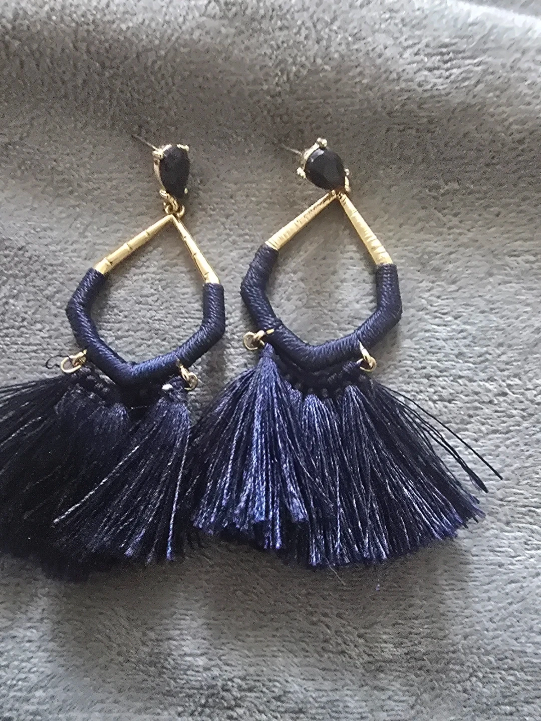 Navy Blue Tassel Earrings with Gold Accents