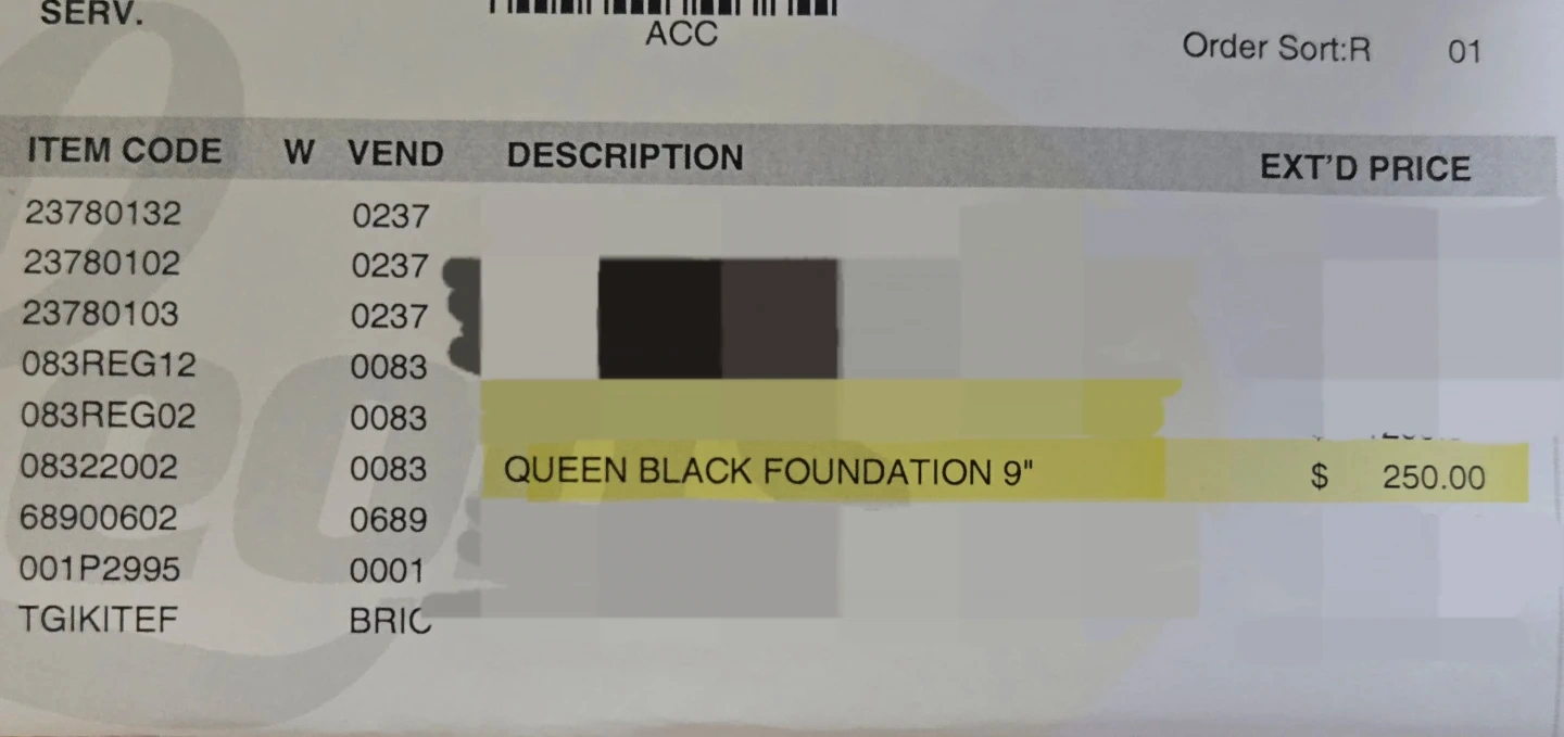 I am selling a Queen Black Foundation 9".