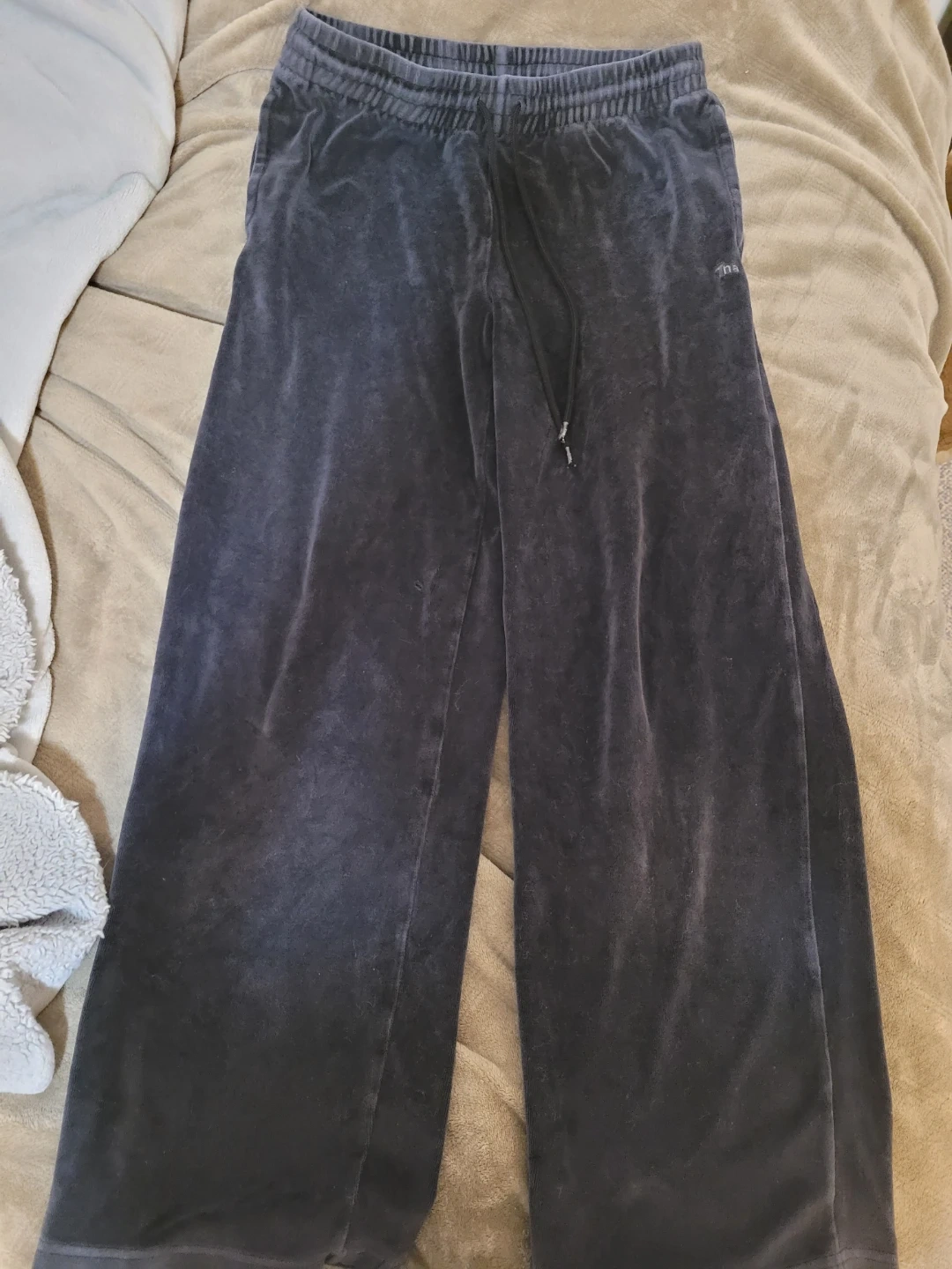 These are Tna velour lounge pants. Size medium. the drawstring tips is damaged a bit, and there's a small hole on the front left leg not very noticeable