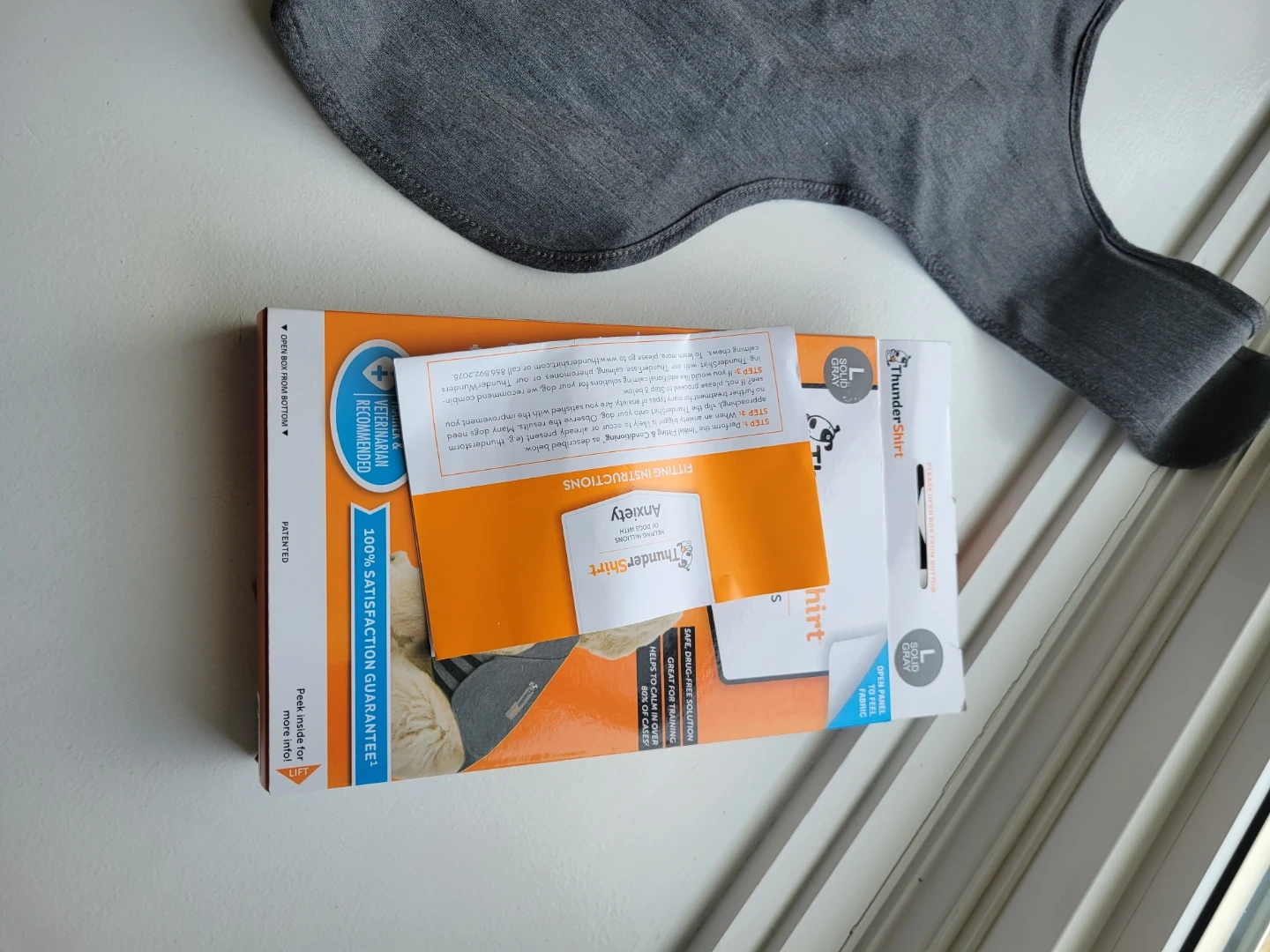 Give your furry friend the gift of calm with this Thundershirt, size large! used once. Thundershirt is designed to help dogs cope with anxiety during thunderstorms, fireworks, separation, travel, and vet visits. It applies gentle, constant pressure, similar to swaddling a baby, to help your dog feel more secure and relaxed.