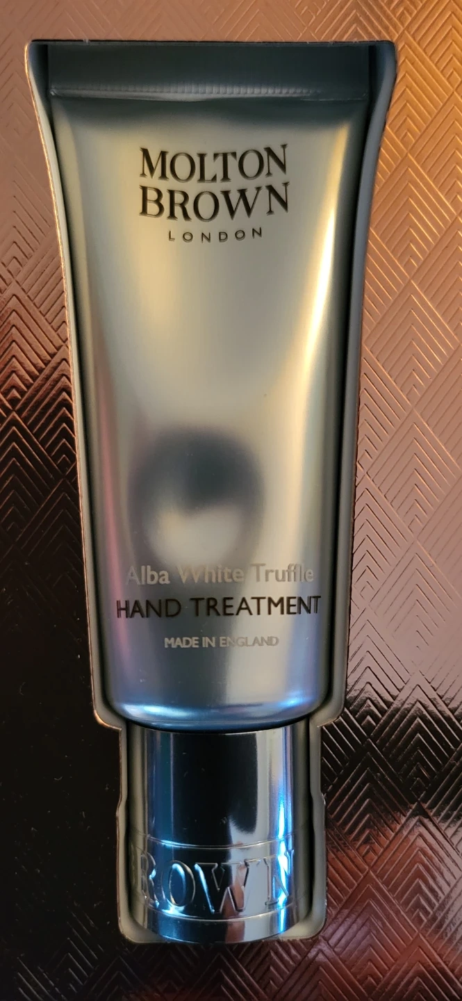 This new Molton Brown hand cream set includes three travel-sized tubes in a lovely gift box with lid. You'll get the Orange & Bergamot Hand Cream, Delicious Rhubarb & Rose Hand Cream, and Alba White Truffle Hand Treatment. All made in England.