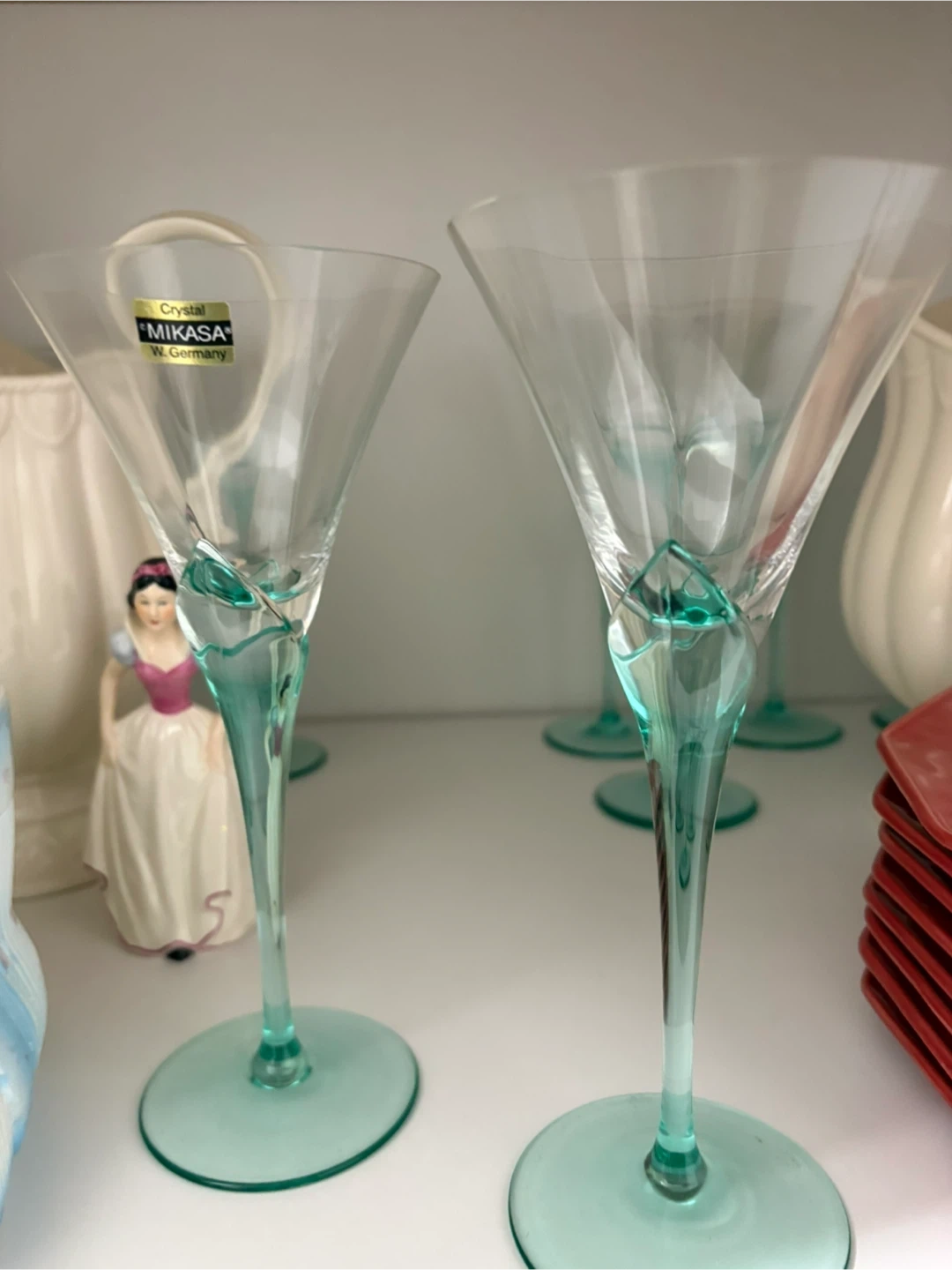 Mikasa Crystal Martini Glasses (Set of 8) - Teal Stem