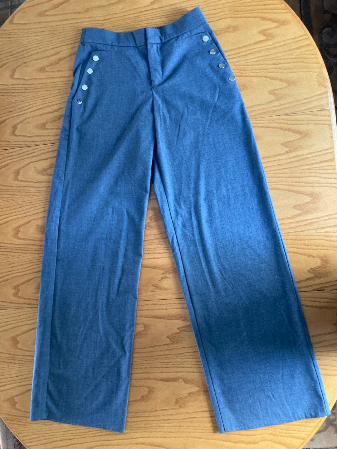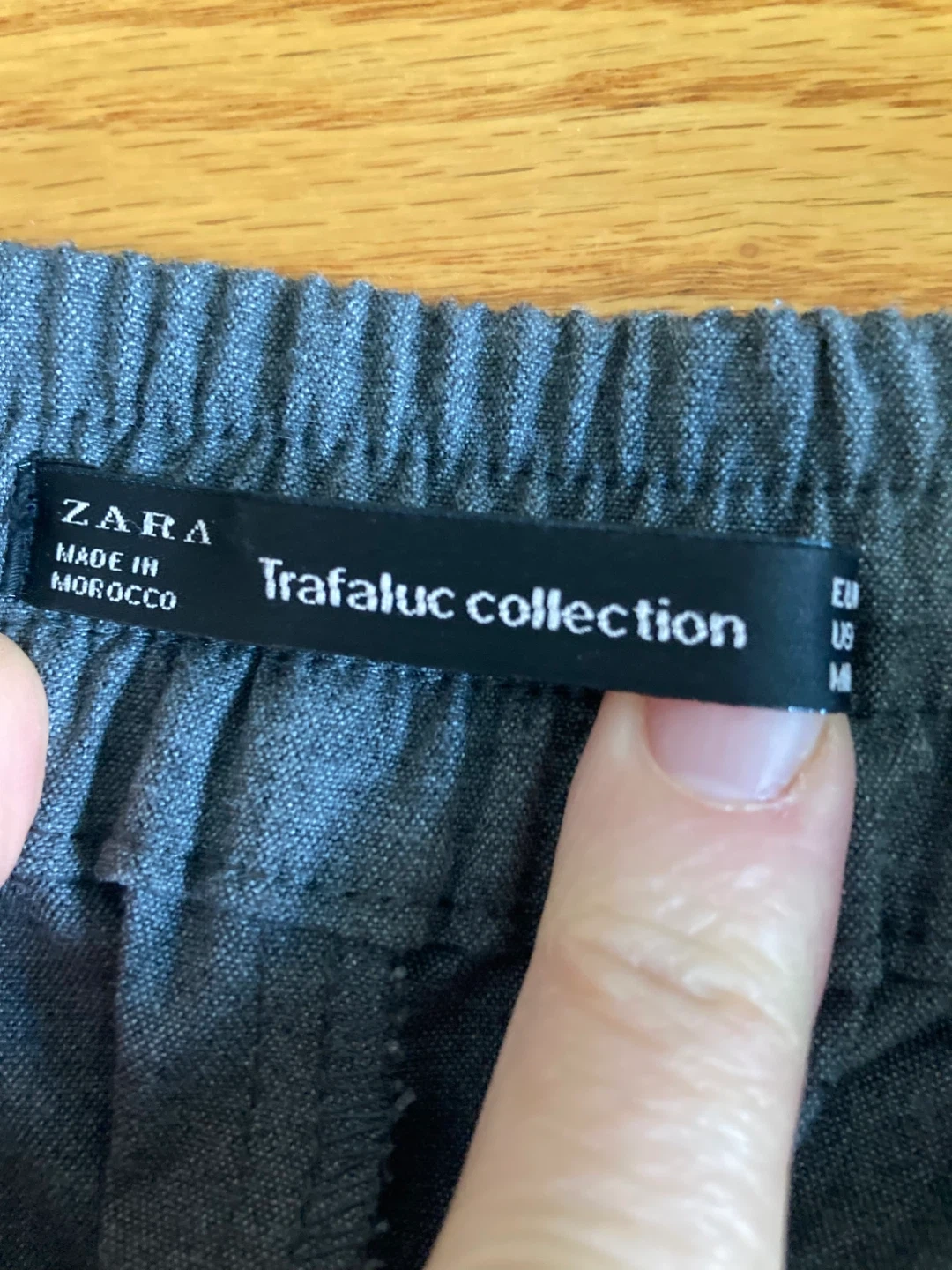 These ZARA Trafaluc Collection pants are a stylish slate grey colour. They're made in Morocco and feature a classic button-front closure. The size is medium. In excellent condition.