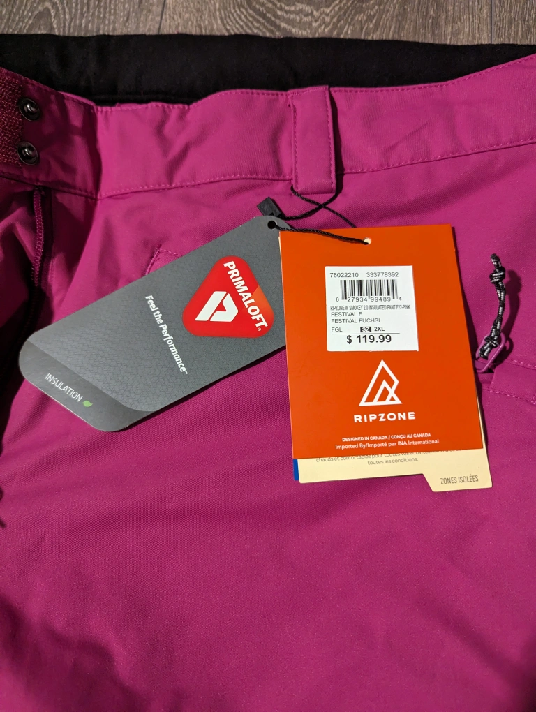 Women's Ripzone ski pants. Size XXL. Pink colour. Primaloft insulation. New with tags. Never worn.