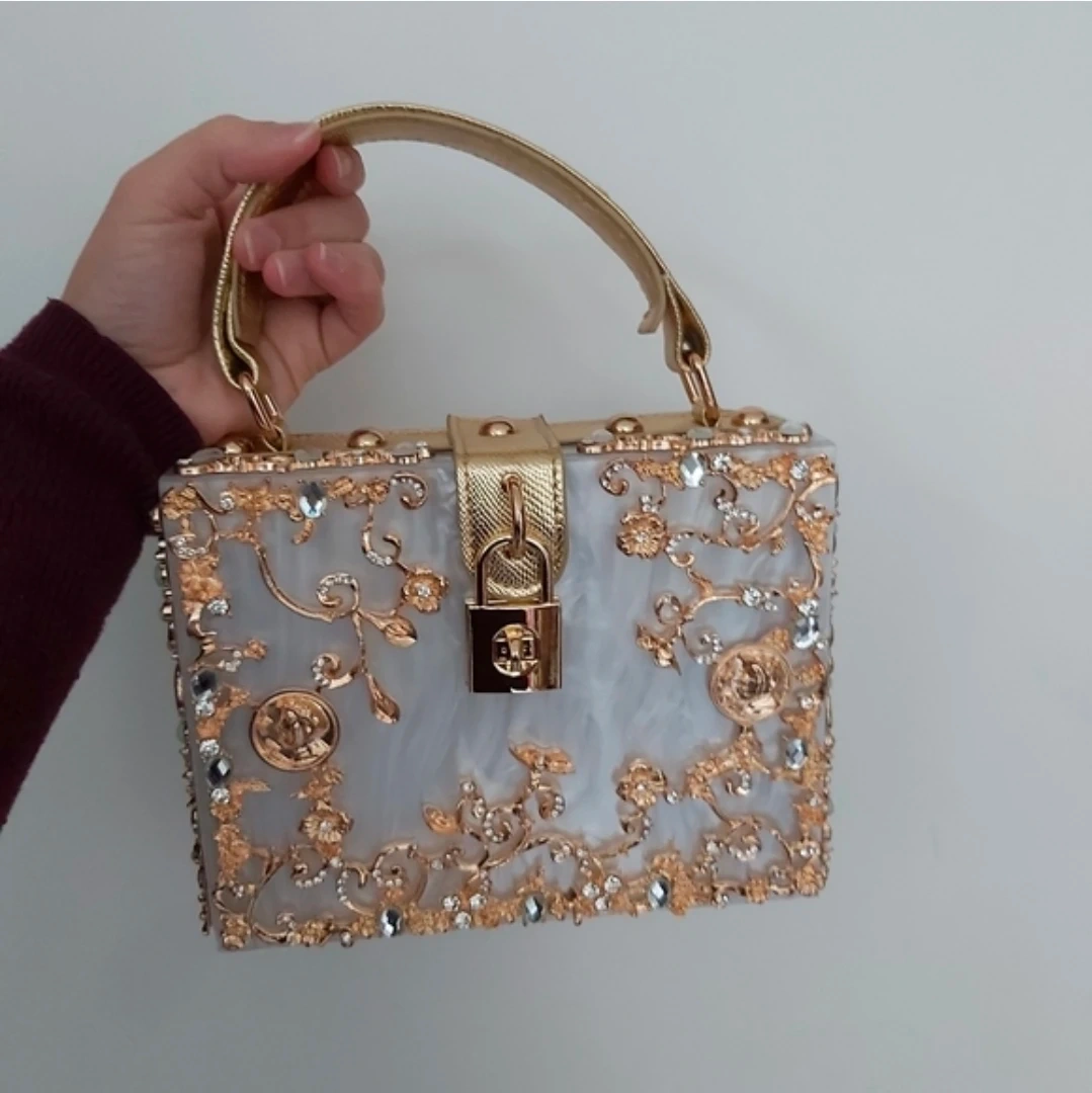 Acrylic and gold plated handbag