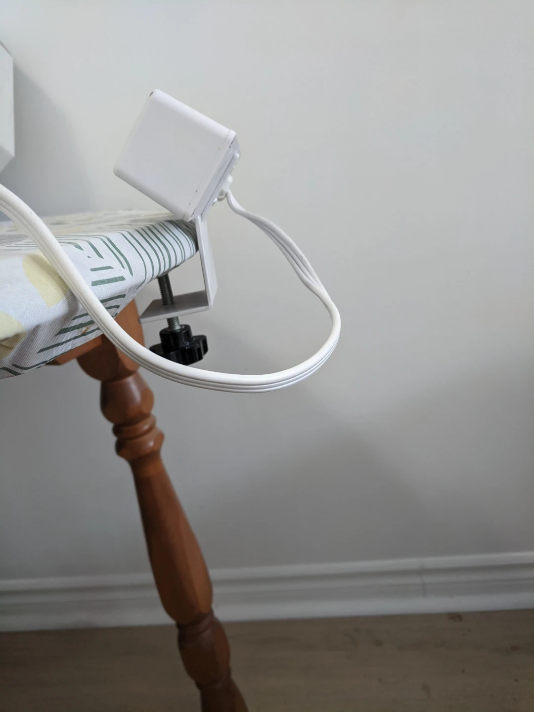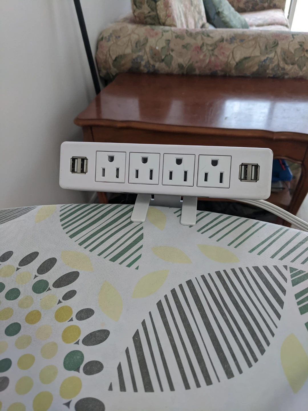This white power strip has four AC outlets and two USB ports, perfect for charging devices. It features a clamp mount for easy attachment to table or desk surfaces. Ideal for desks or workspaces needing extra outlets and convenient charging options. Pick up at 195 Merton Street Toronto or pick up at Subway station Davisivill. And I can deliver it to your house but you need to pay me another $3. Thanks.