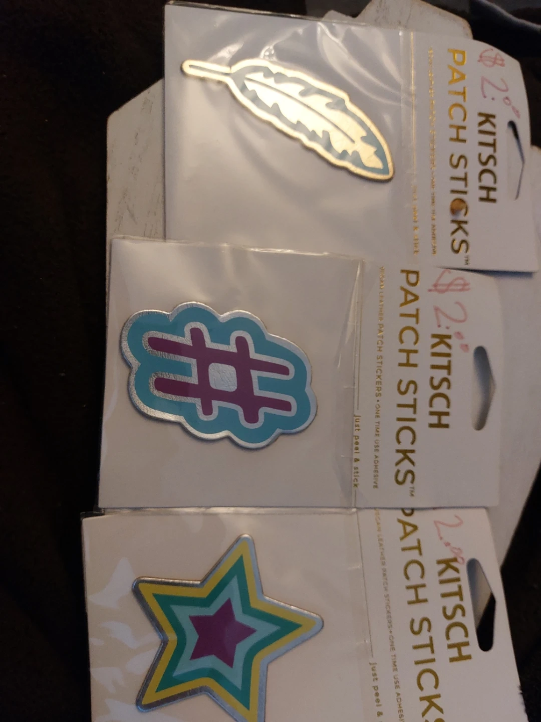 Kitsch Patch Sticks - Feather, Hashtag, Star Designs