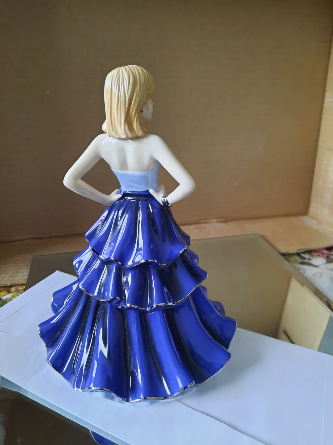 This Royal Doulton 'Pretty Ladies' figurine is titled 'Time To Celebrate'. It features a lady in a stunning blue ruffled gown. 7.5 inches tall..