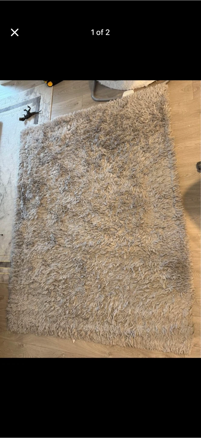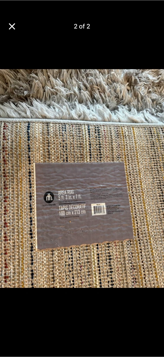 This HomeTrends area rug is a decorative piece for your home. It measures 160 cm x 213 cm. The rug has a plush, shaggy texture that's super soft underfoot. Very clean, from a no pet and non smoking home!