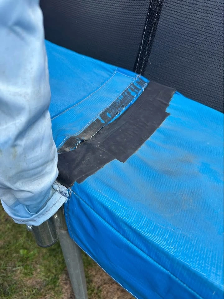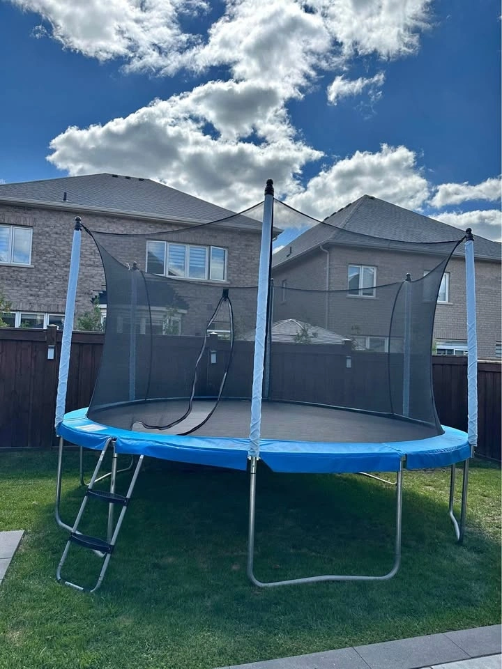 14ft Jump Trek trampoline in great condition, purchased from Canadian Tire about 4 years ago. Mesh poles, jump mat with springs were stored indoors every winter. No tears or rips on the jump mat or mesh. The photo shows one area where the blue pad is torn on the outside, but this does not affect the trampoline's use. A ladder is included and was purchased separately. Asking $200. We will dismantle it and have it ready for pick up in Woodbridge.