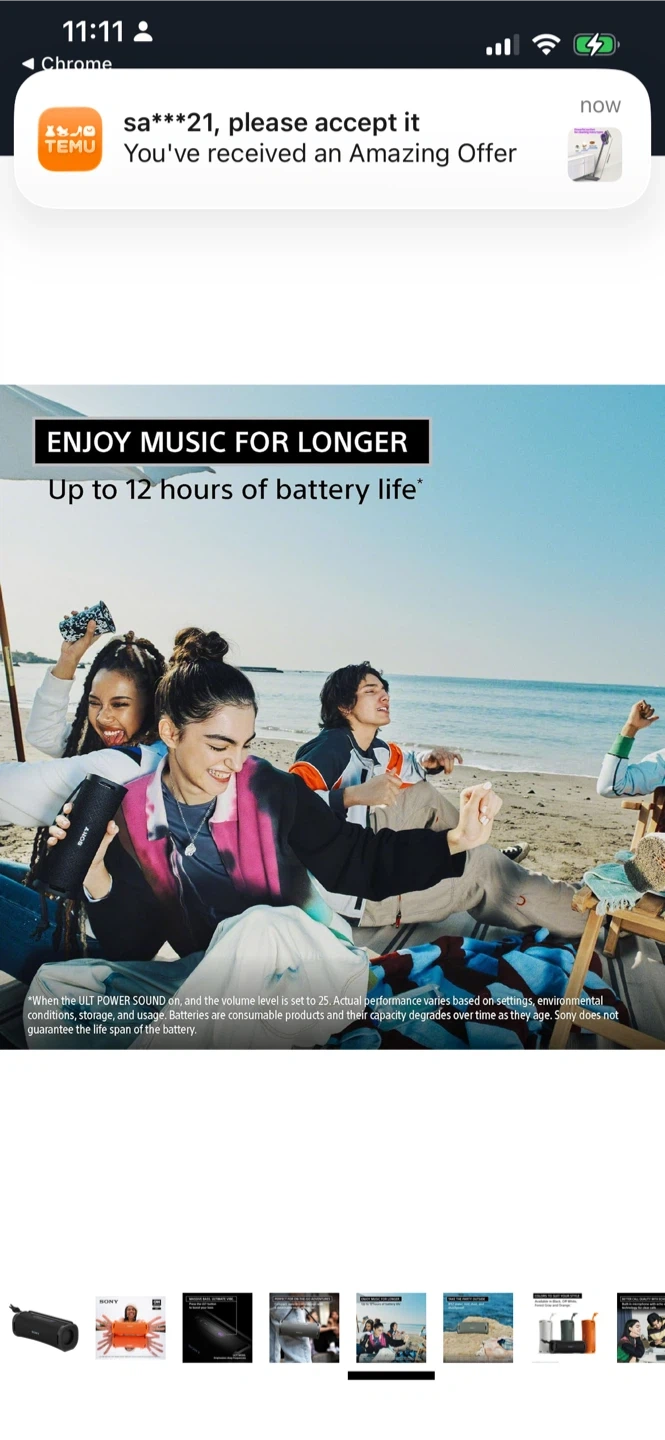 This Sony portable Bluetooth speaker offers massive bass and ultimate vibe with its ULT button. It's IP67 water, rust, and dustproof, perfect for outdoor adventures. Enjoy music for up to 12 hours of battery life. It features a compact, easy-to-carry design with a detachable multi-way strap.