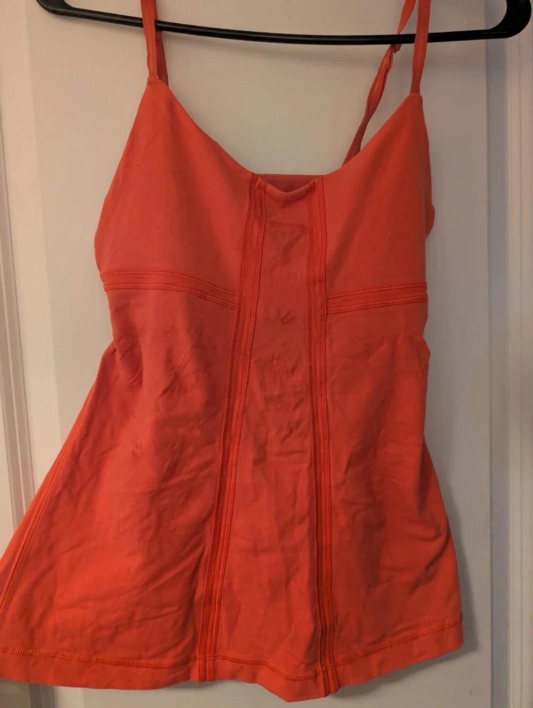Coral Lululemon tank top with built-in bra. Strappy back design. Great for workouts or casual wear. Size small/medium about a 6
