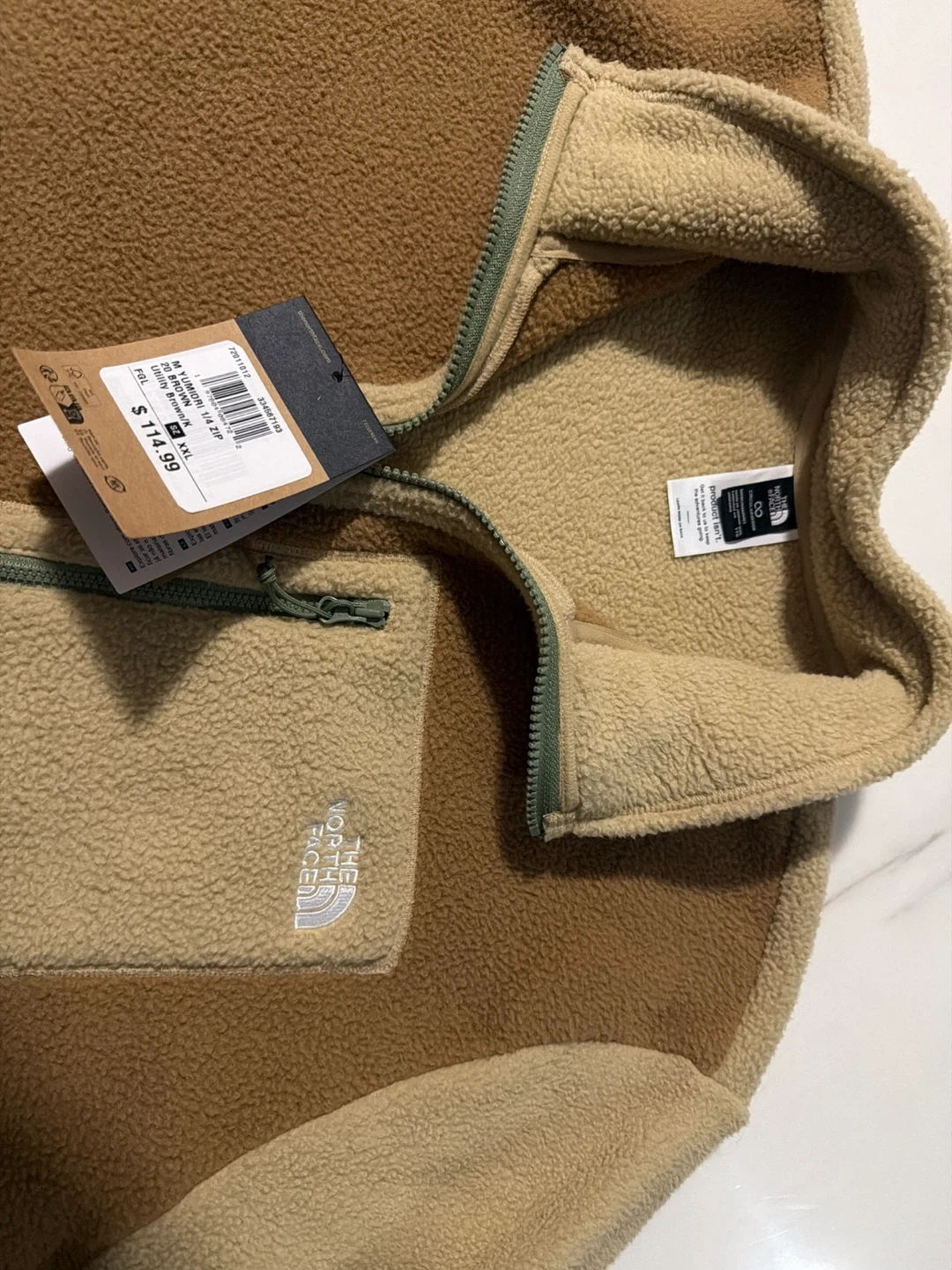 This is The North Face M Yumi_ori 1/4 Zip pullover. It's a Size XXL in the colour Utility Brown/K. This fleece jacket is perfect for staying warm on cooler days.