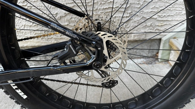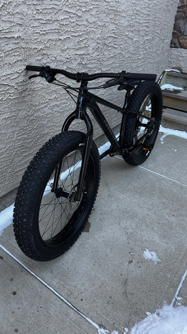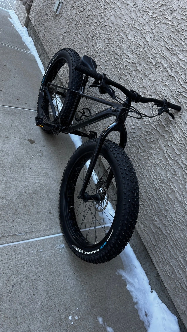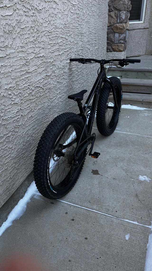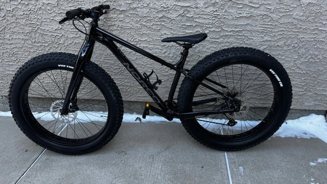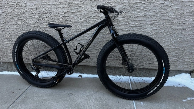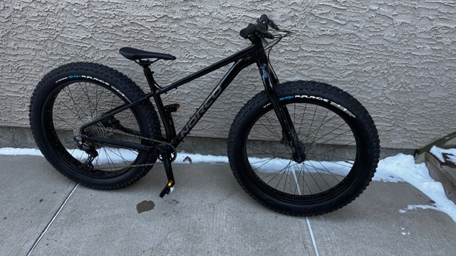 Norco Bigfoot 2 Fat Bike, Medium, Black. Cost $2100 new. Asking $1500. Like new excellent condition with minimal use. Unable to ride the past 2 seasons due to injuries. Excellent bike with a great spec, including studded tires and Shimano SPD (SM-PD22) pedals. Specs: Frameset FRAME Butted X6 Aluminum FORK 6061 Aluminum Drivetrain Shimano Deore SL-M6100-R CRANKSET Praxis Cadet M30, 32T. CASSETTE Shimano Deore CS-M6100-12, 10/51T, 12 Speed CHAIN Shimano Deore CN-M6100 Brakes SRAM Level/Avid G2 Seatpost: TranzX YSP18 Dropper, 31.6mm, 130mm. Wheels & Tires: Wheels: Alloy TR, 27.5