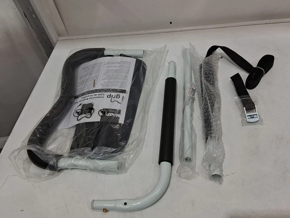 This MedPro M-Grip bed rail for elderly adults is designed for safety and convenience. πŸ›οΈπŸ‘΅ It features a dual-grip assist bar with a storage pouch and adjustable bedside fall prevention, fitting king, queen, full, and twin mattresses. πŸ“πŸ›οΈ This item is new and has never been used. βœ¨πŸ†• Key features include: * Dual-Leverage M-Shape Handle πŸ’ͺ * Soft-side storage pouch πŸ›οΈ * Adjustable Height ⬆️⬇️ * Ultra-Durable πŸ›‘οΈ