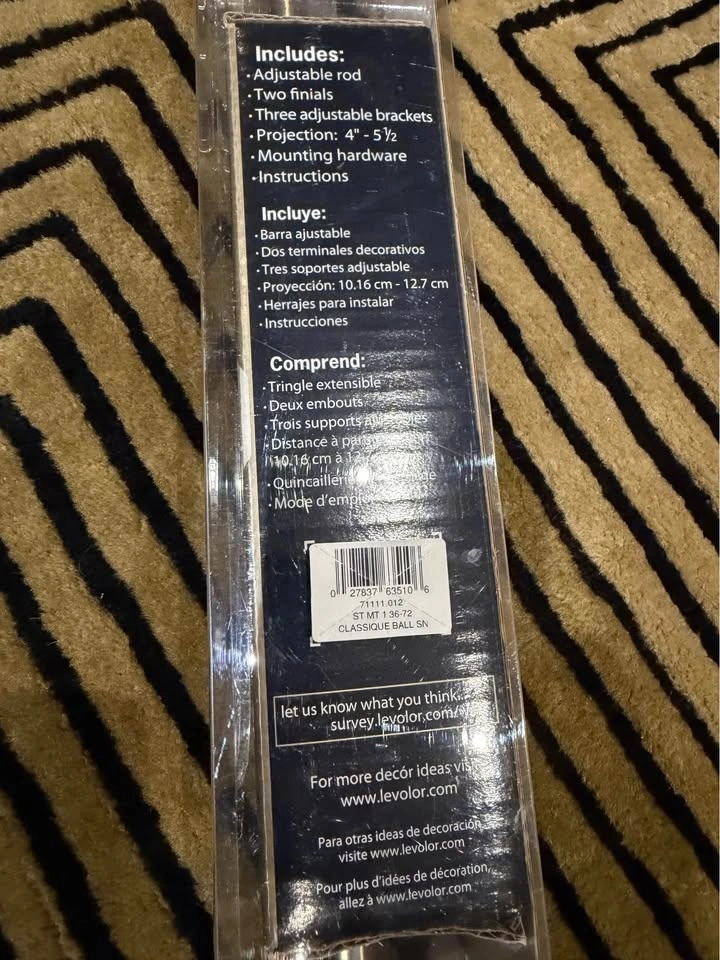 Levolor Heritage Series "Classique Ball" Curtain Rod Set in a Satin Nickel (SN) finish.