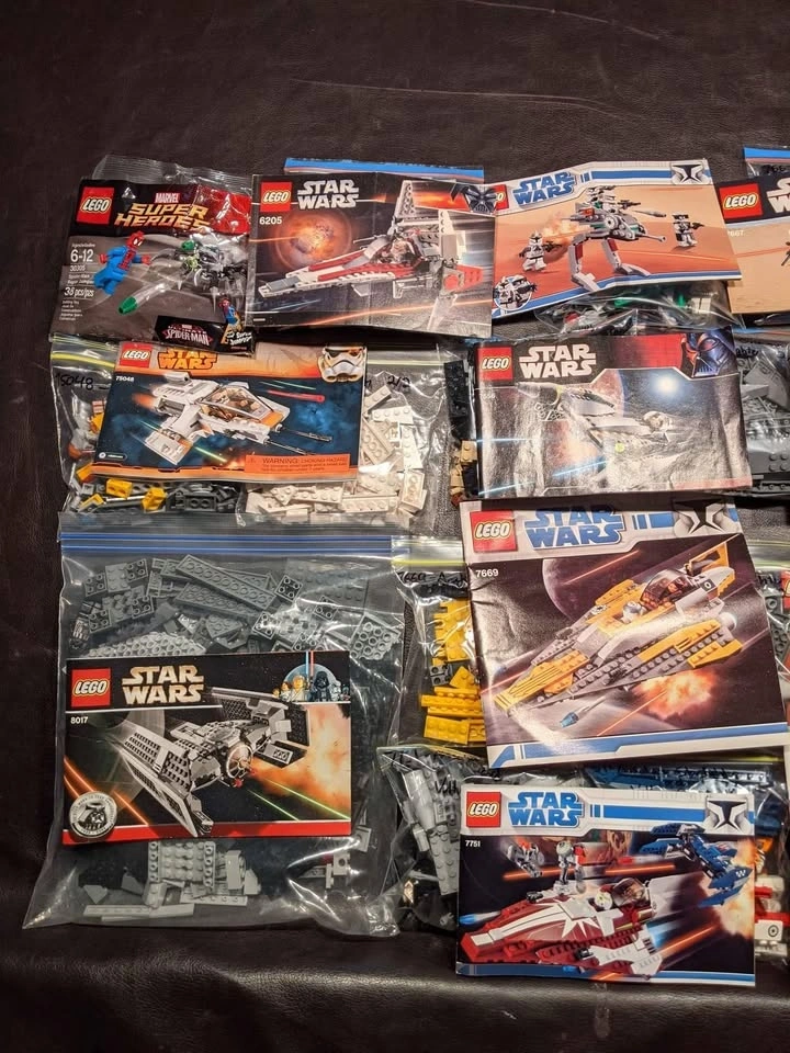 Selling various LEGO Star Wars sets. Unless otherwise noted, all sets come with their instruction booklet. No set has its original box. All sets have been put together then taken apart with their manuals to ensure none are missing pieces. If any sets are missing a piece, it has been noted. If you are buying multiple sets, we can work out a fair price. The whole lot is available for $1000.