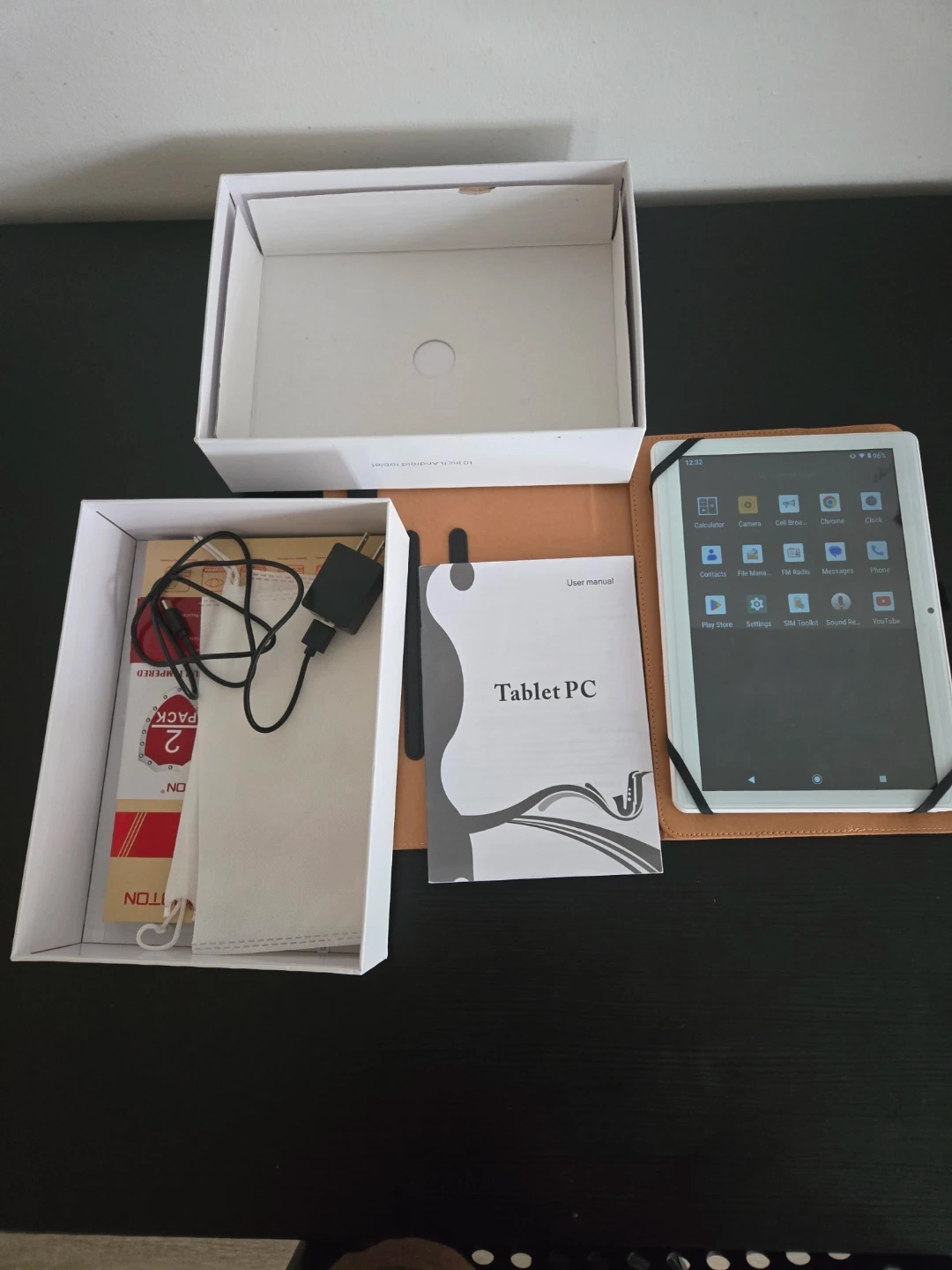 This is an Android Tablet PC that runs on Android 10.0. It has 64 GB of storage. It includes the original box, charger, and user manual. Screen protector and case included. Great for everyday use and entertainment!