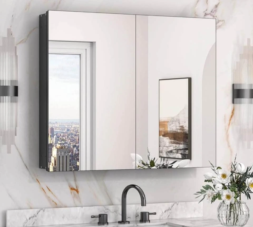 Black Mirrored Bathroom Medicine Cabinet – 76 × 66 cm