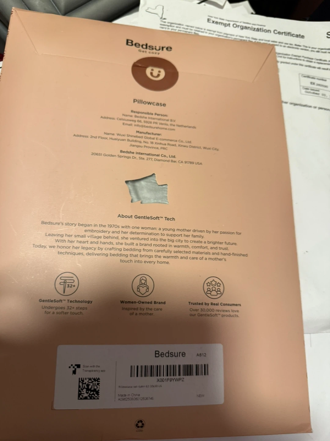 BedSure GentleSoft Tech pillowcase set. The pillowcase set is Satin G2 and measures 20x30 US. It's a women-owned brand inspired by the care of a mother. It also features GentleSoft Technology that undergoes 32+ steps for a softer touch