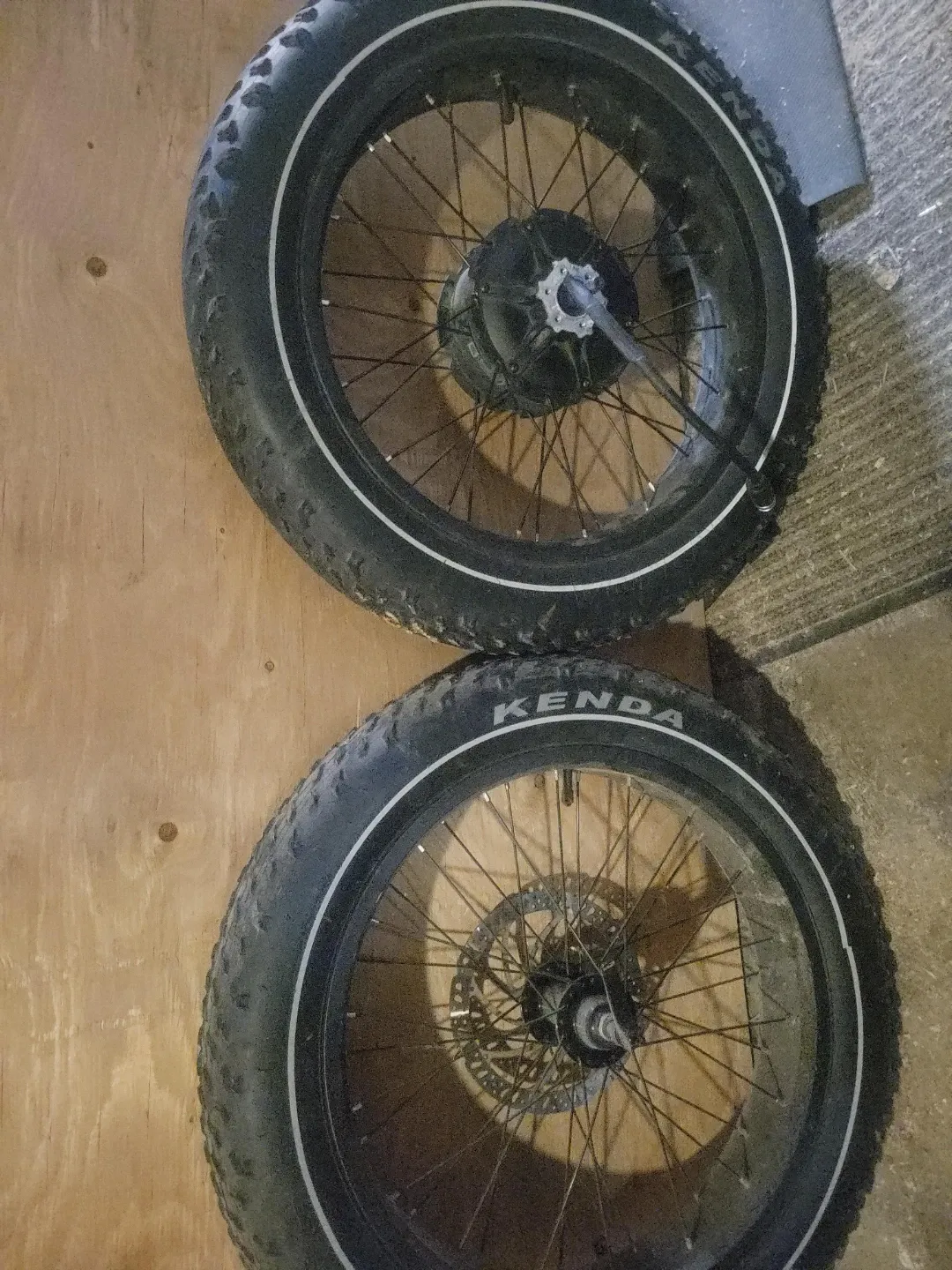 Selling a set of Kenda fat bike wheels. The tread on the rear tire is a bit worn but the hub motor is one of the most powerful geared motors bafang makes. Terminated with l10 conecctor. Halls are missing so must be run with a sensor less controller or you can replace the hall board.