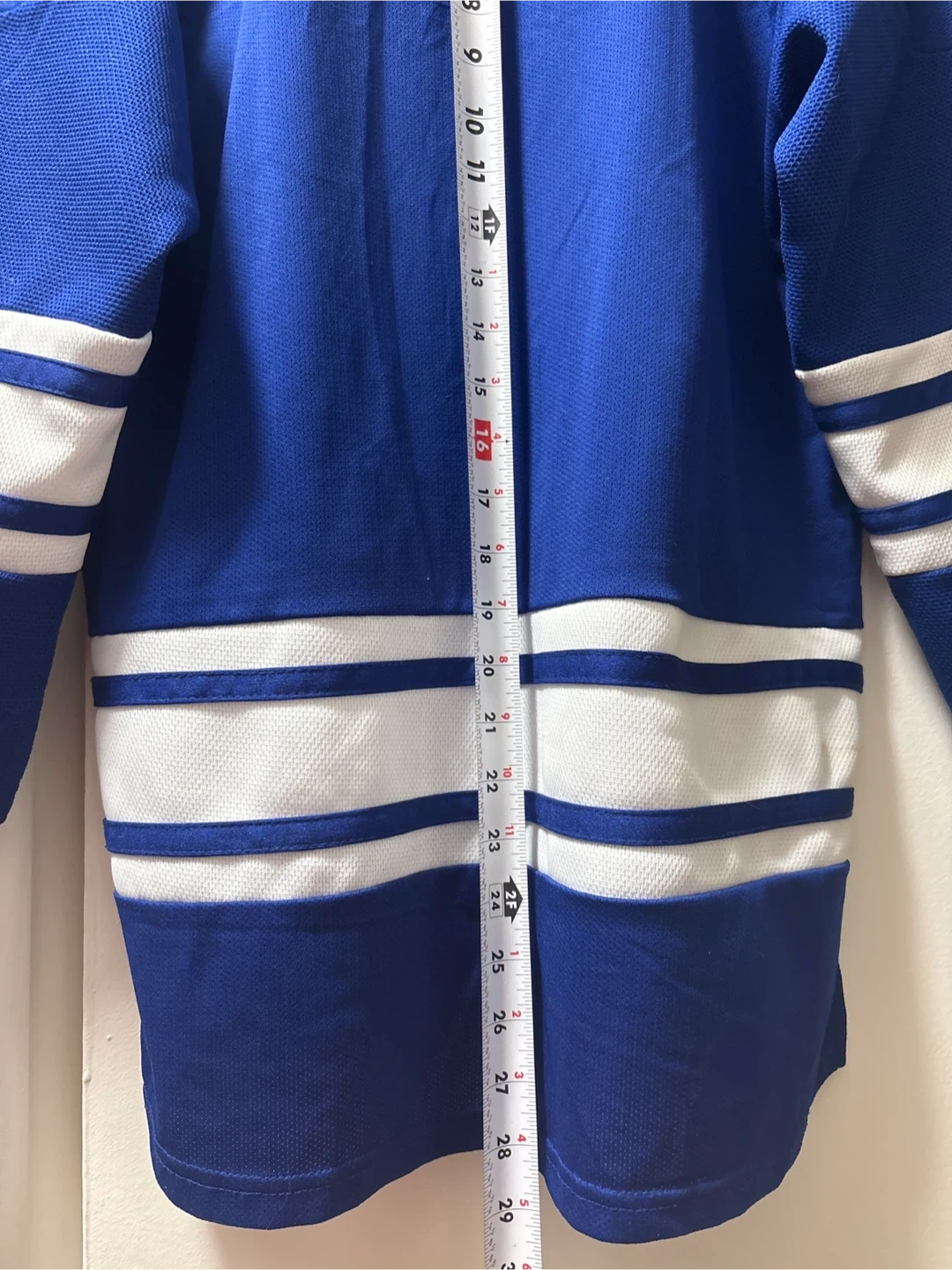Selling a brand new original youth L/XL Toronto Maple Leafs hockey jersey. It's blue with white stripes and features the team's iconic logo. Made by Reebok. Length 28”, width 20”.