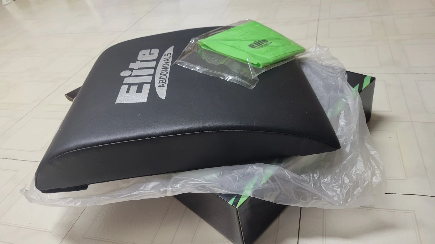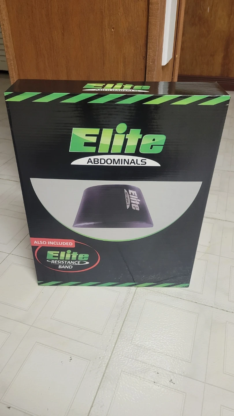 This Elite Abdominals core trainer is designed for effective ab workouts. It comes with a green Elite resistance band for added exercises. The set includes the ab trainer, the resistance band, and the original box.