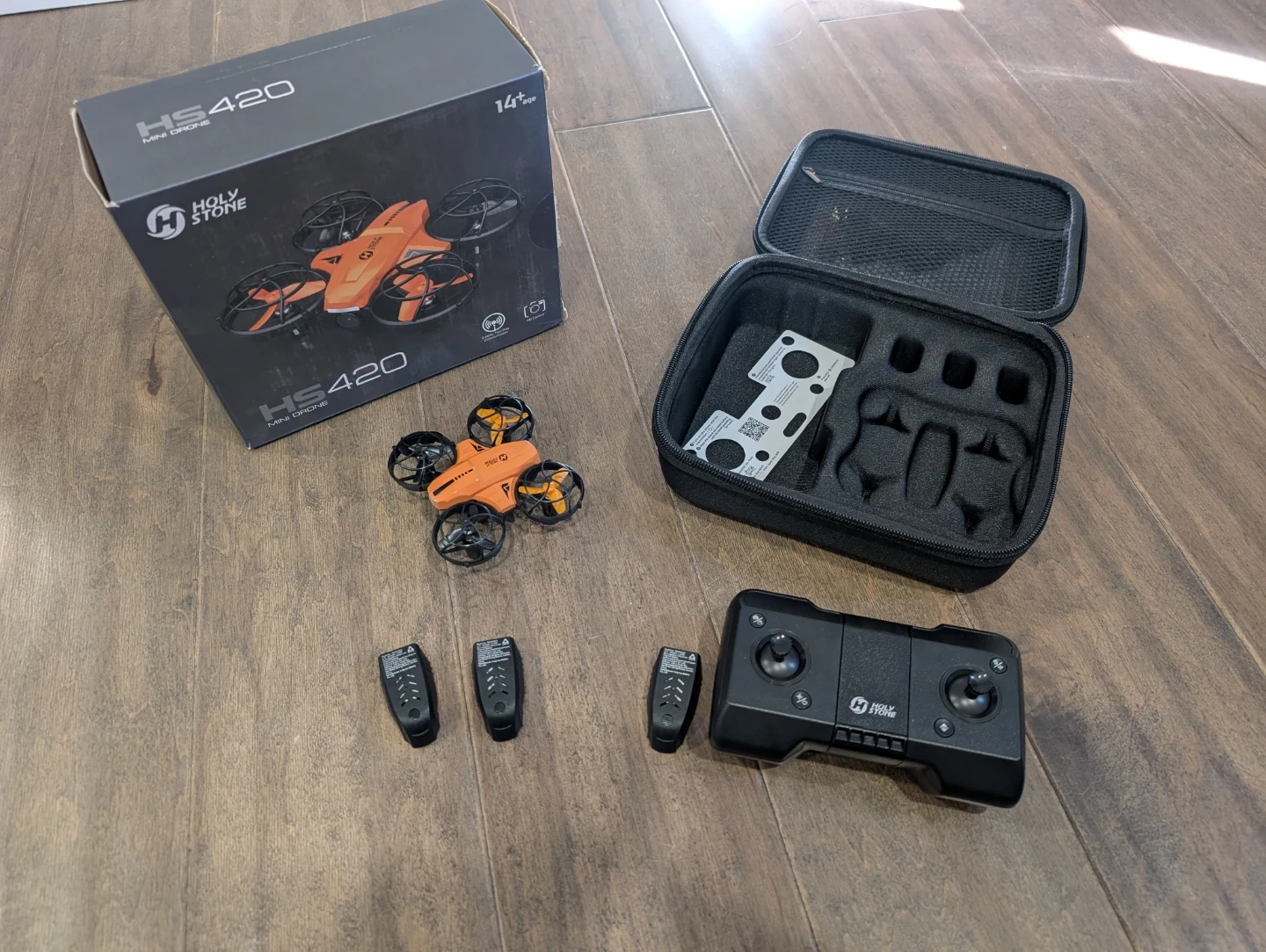 Brand new Holy Stone HS420 mini drone for sale. 1080p HD FPV camera, pocket RC quadcopter, 3 batteries, carrying case, gesture selfie, altitude hold, 360 flips, circle fly, great toy and gift. $50 FIRM.