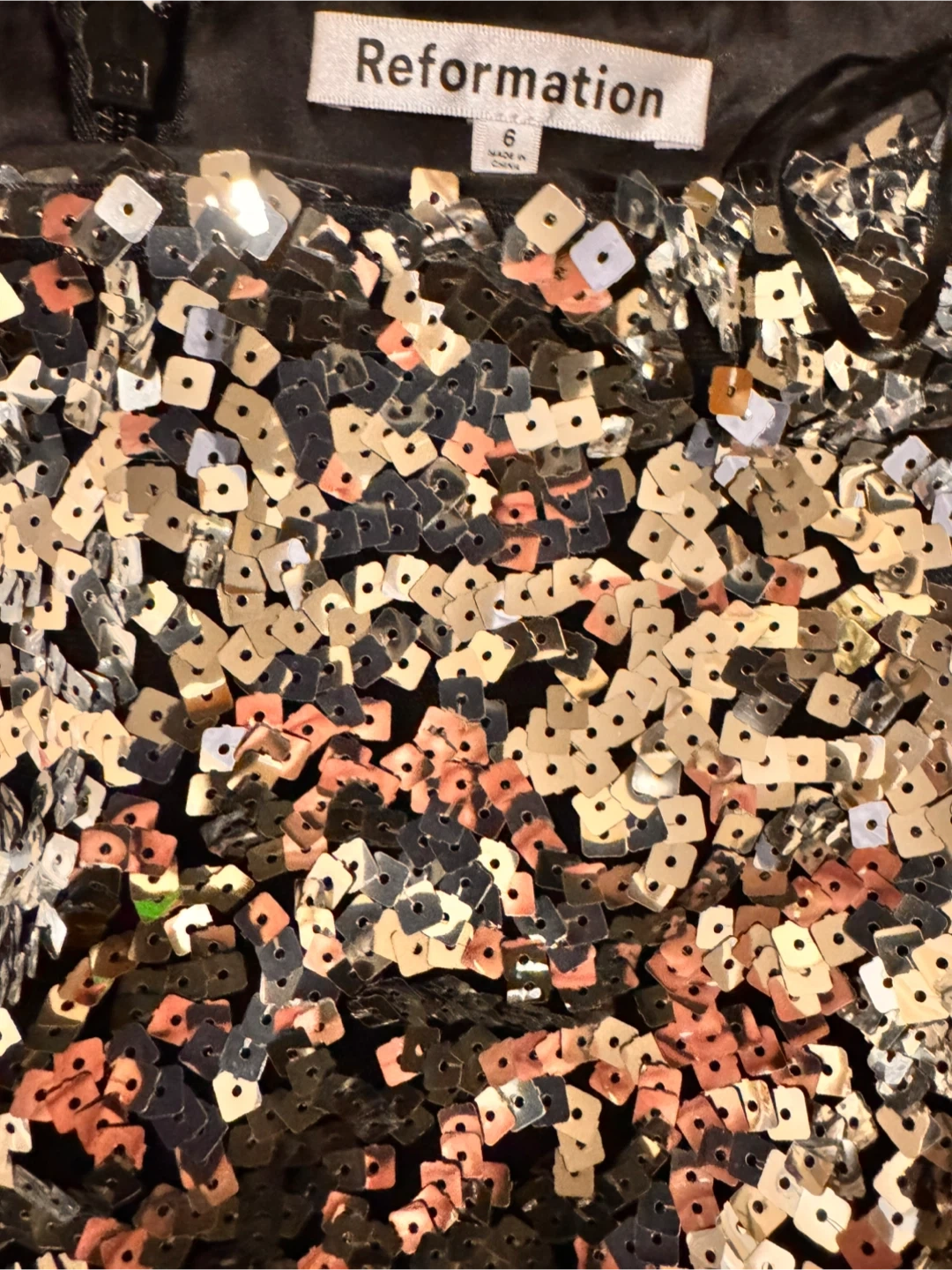 Sparkly sequin skirt from Reformation. It's a size 6. This skirt would be fun for a night out or a party!