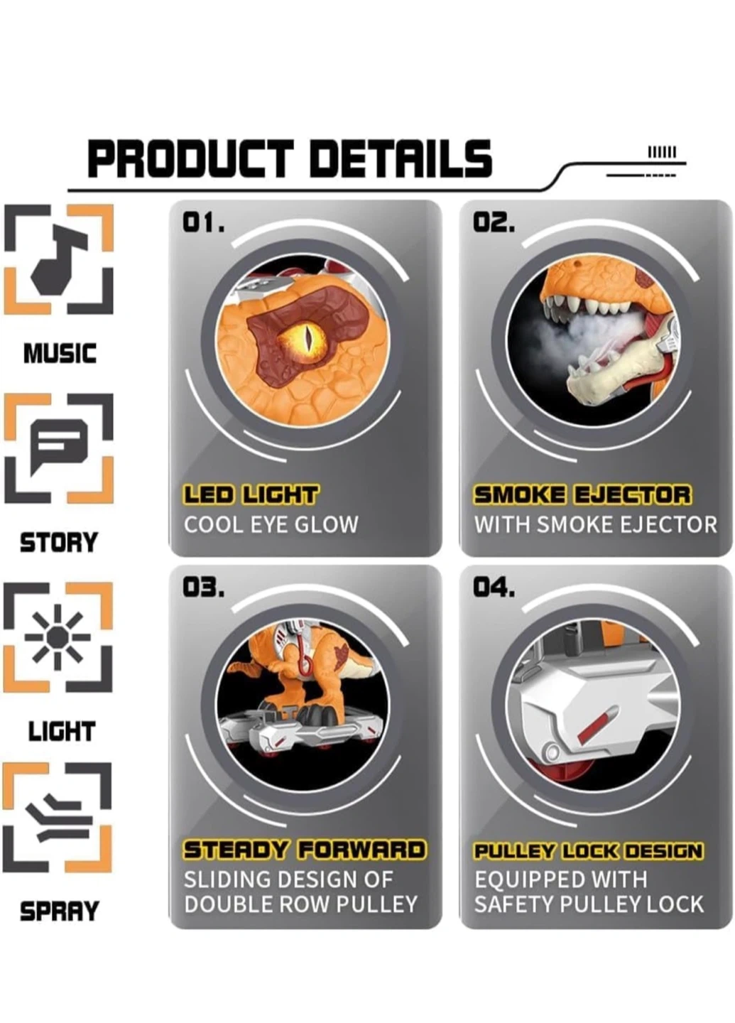 Interactive Features πΆπ: Includes music, lights, and realistic dinosaur roars for an engaging and immersive playtime experience.