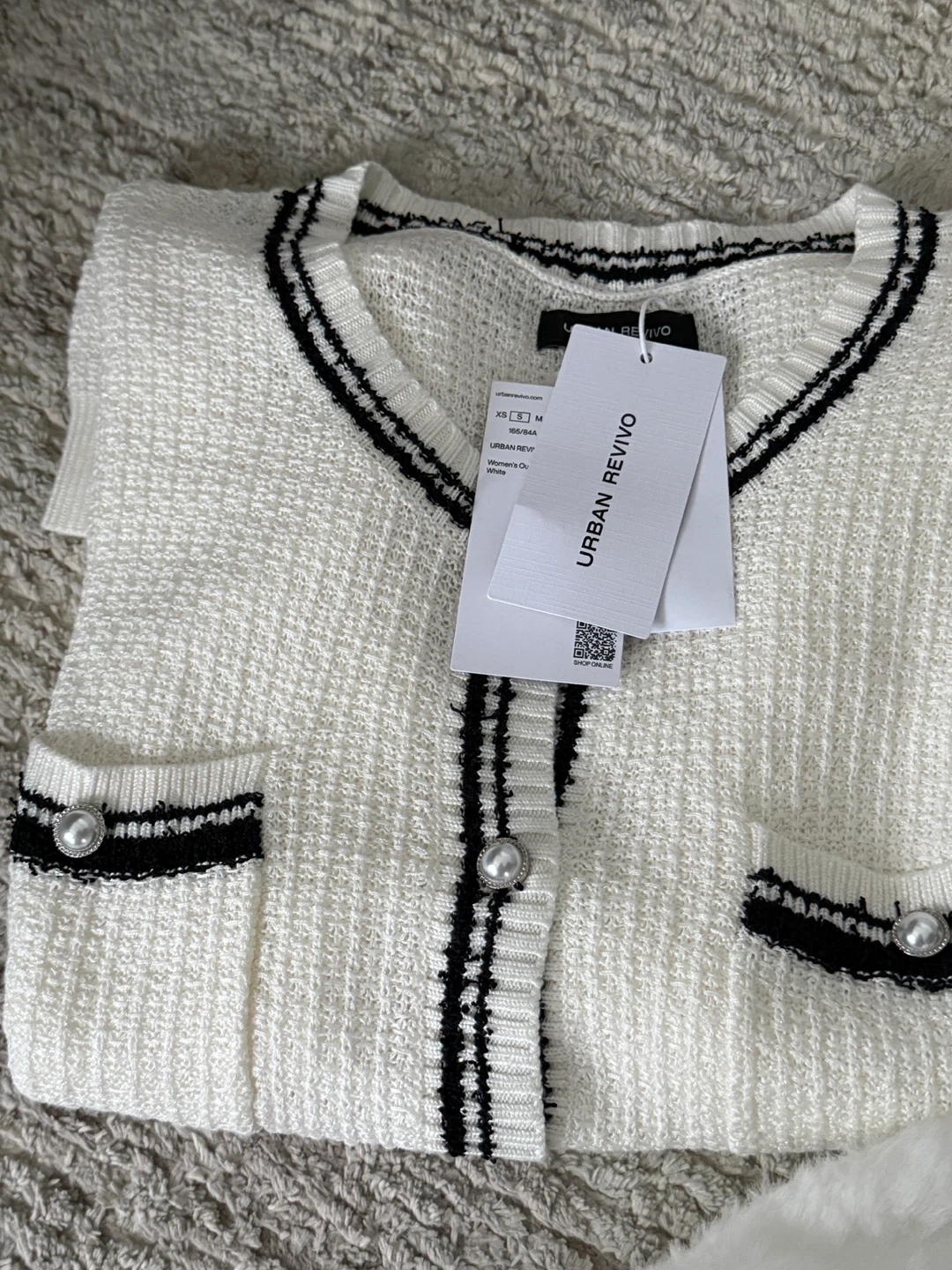 I have two brand new cardigans from Urban Revivo for sale! One is a classic cream-coloured tweed knit with black trim, Size