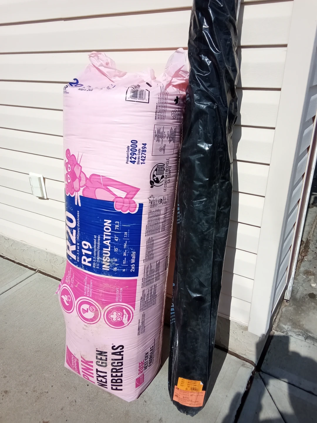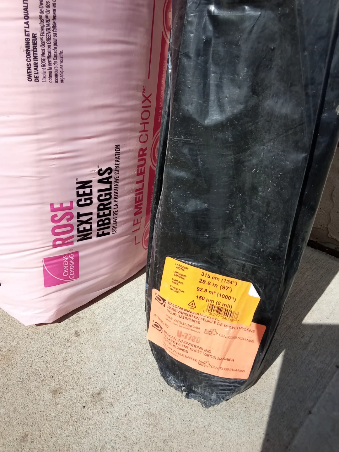 Owens Corning PINK NEXT GEN Fiberglass Insulation, R20. Also includes a 315 cm (124") wide polyethylene vapor barrier. Perfect for your next home renovation project!