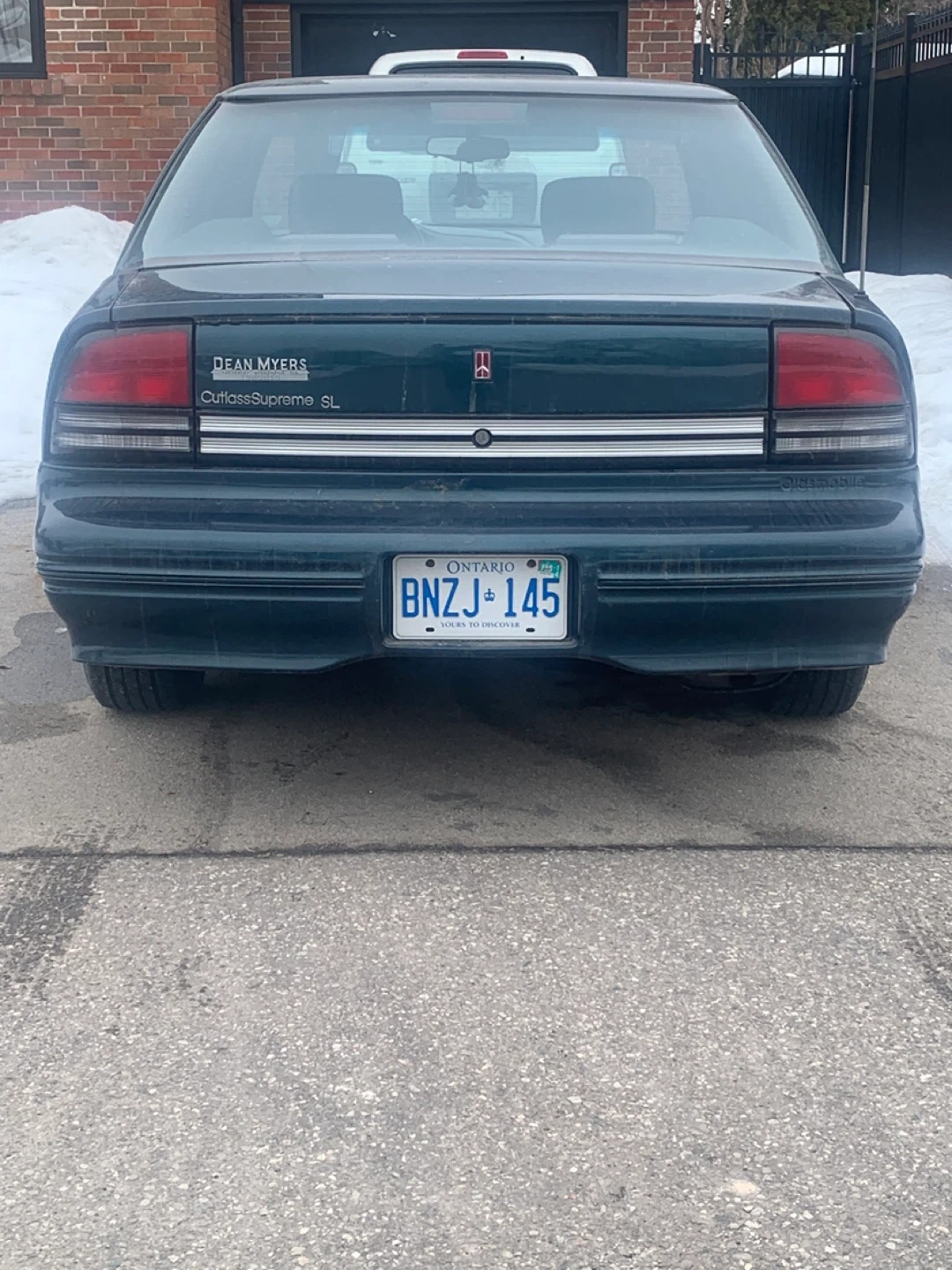 Selling a 95 Oldsmobile Cutlass Supreme SL. It's a four-door sedan. The exterior is a dark teal colour, leather grey interior mint condition.