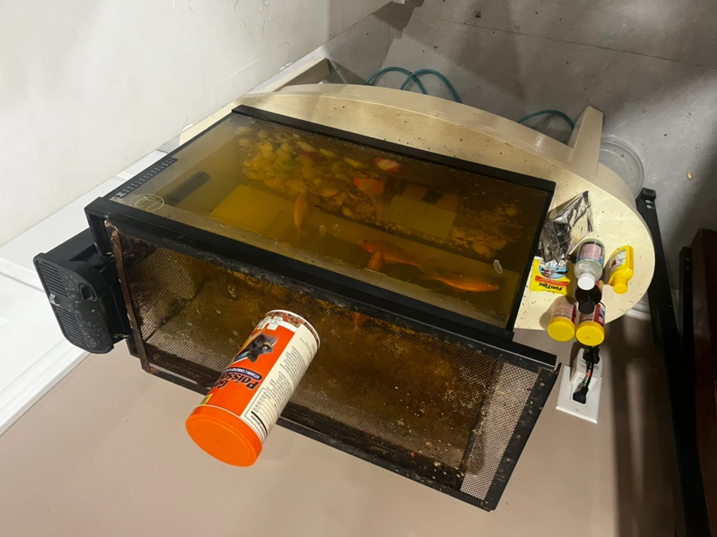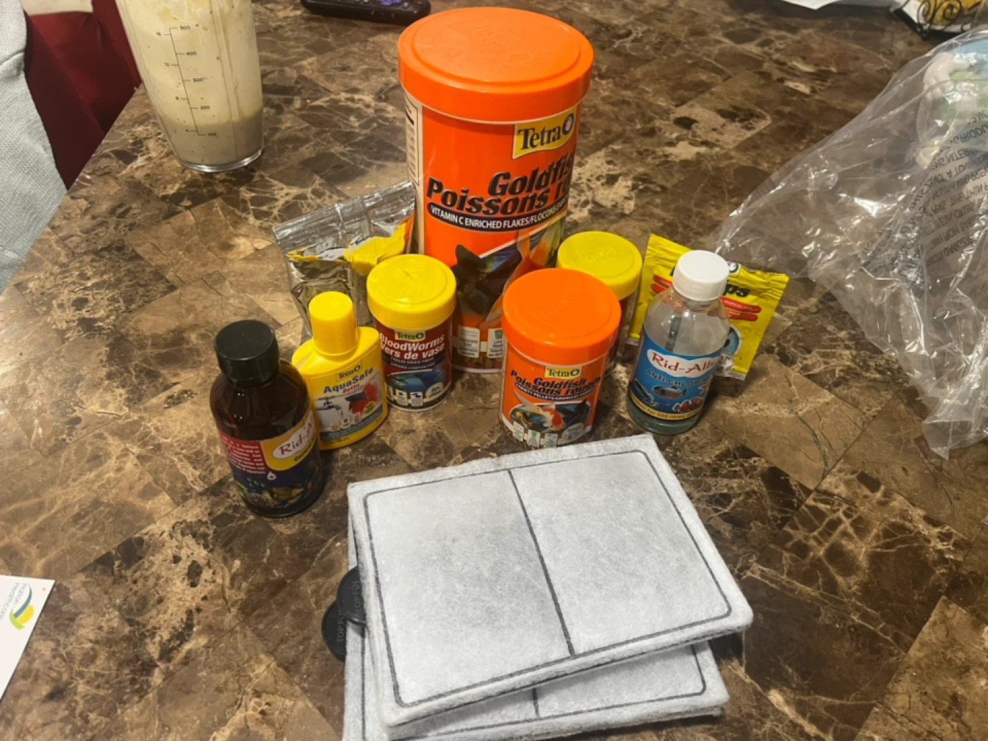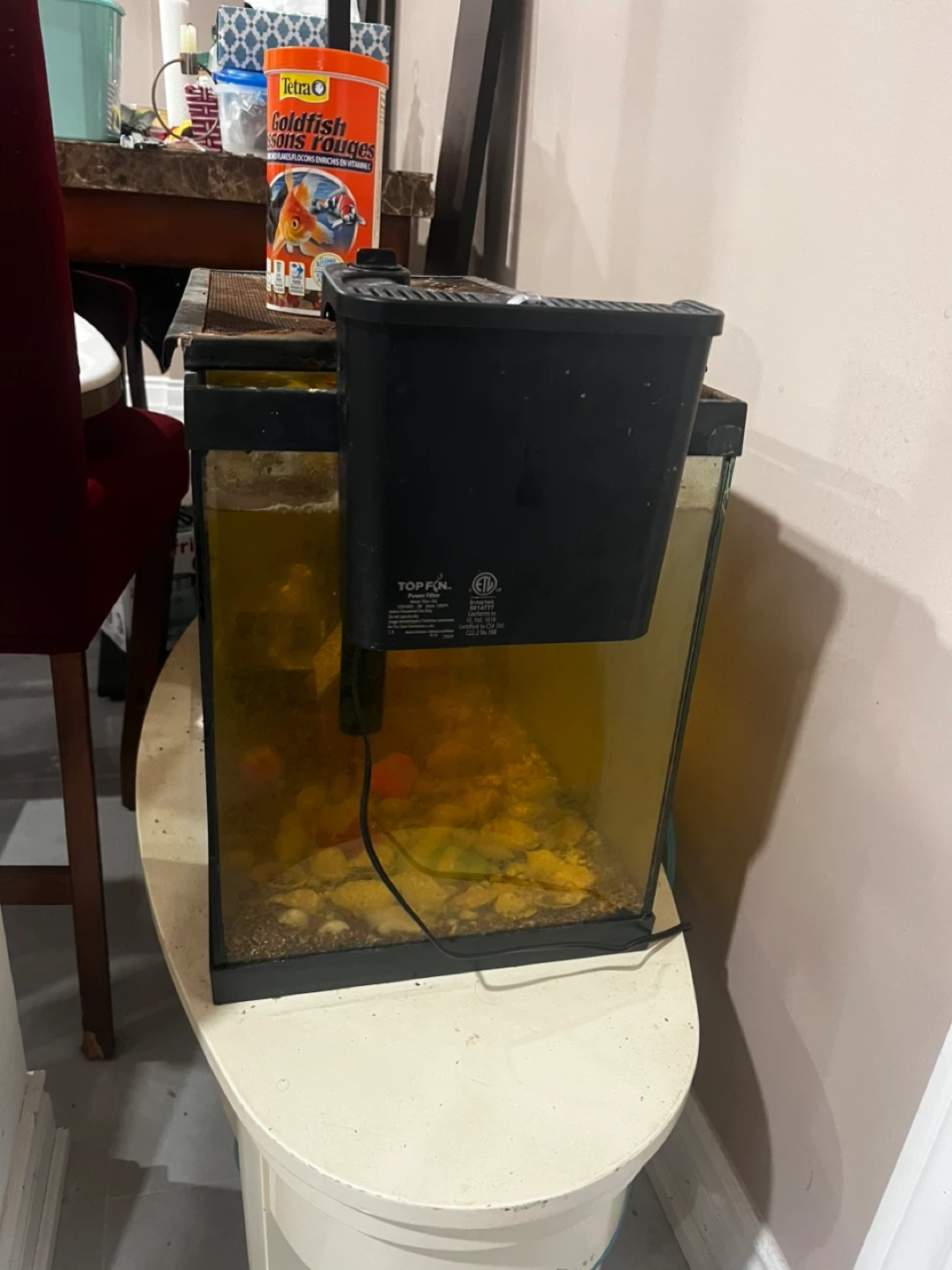 Aquarium 20 gallon,four 3yrs old fishes,food,filters,air pump